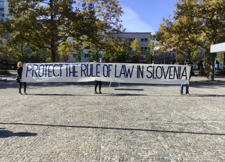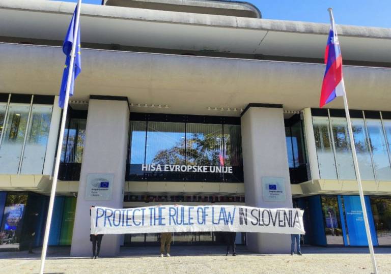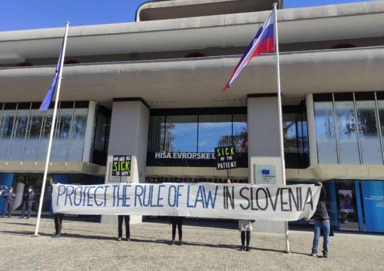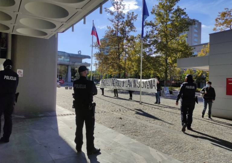 »Vodjo, člane delegacije in celotno evropsko skupnost bomo pozvali, da zavarujejo vladavino prava v Sloveniji in naredijo vse, kar je v njihovi moči, da ustavijo Janeza Janšo, ki lastnoročno ruši ustavni red in vladavino prava ter hkrati uničuje mednarodni ugled Slovenije,« izpostavljajo protestniki.