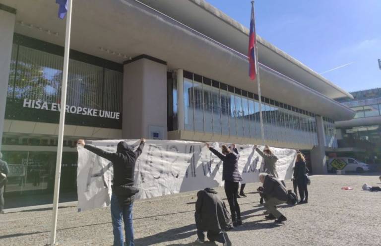 »Protestniško gibanje bo danes izvedlo manjšo interventno akcijo ob 14.20 pred Hišo Evropske unije, na Dunajski cesti,« je danes najavila Protestna ljudska skupščina Upor Si.