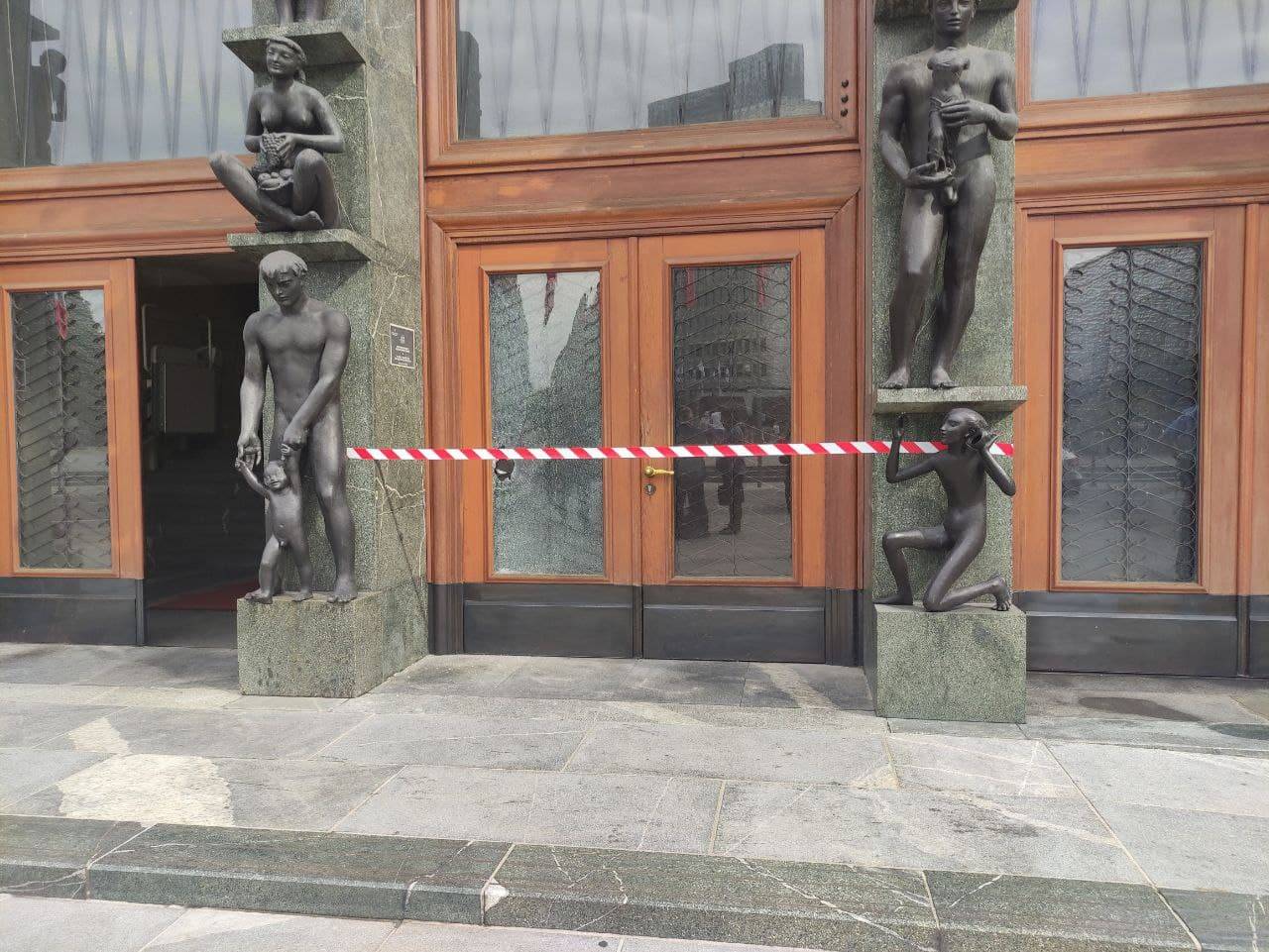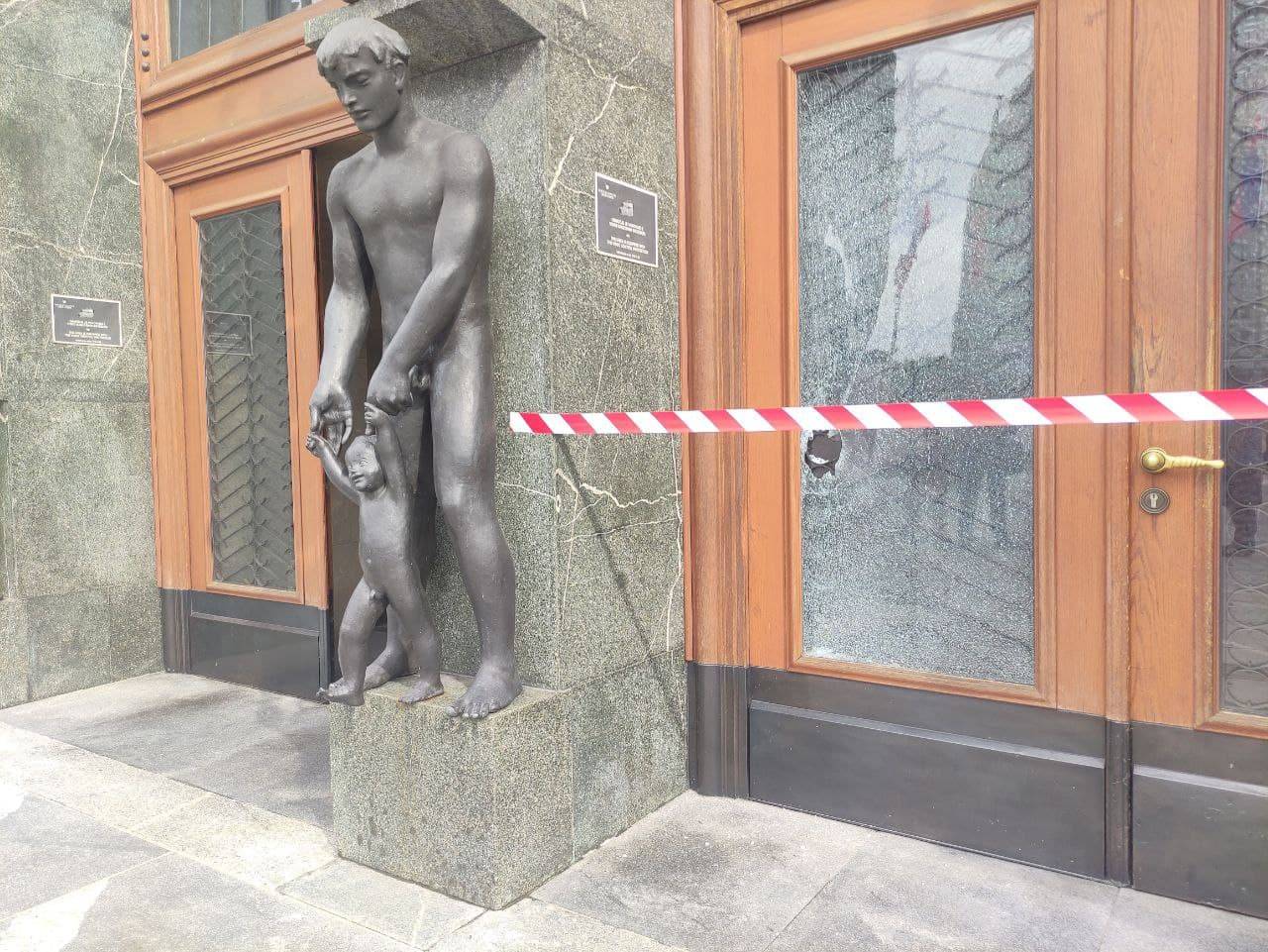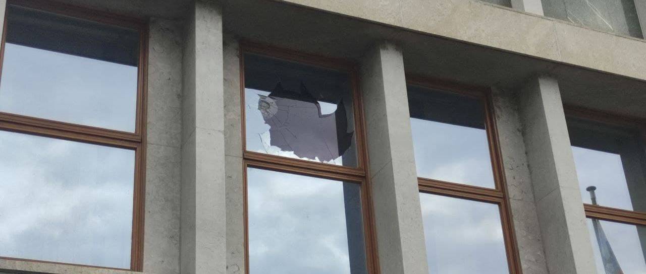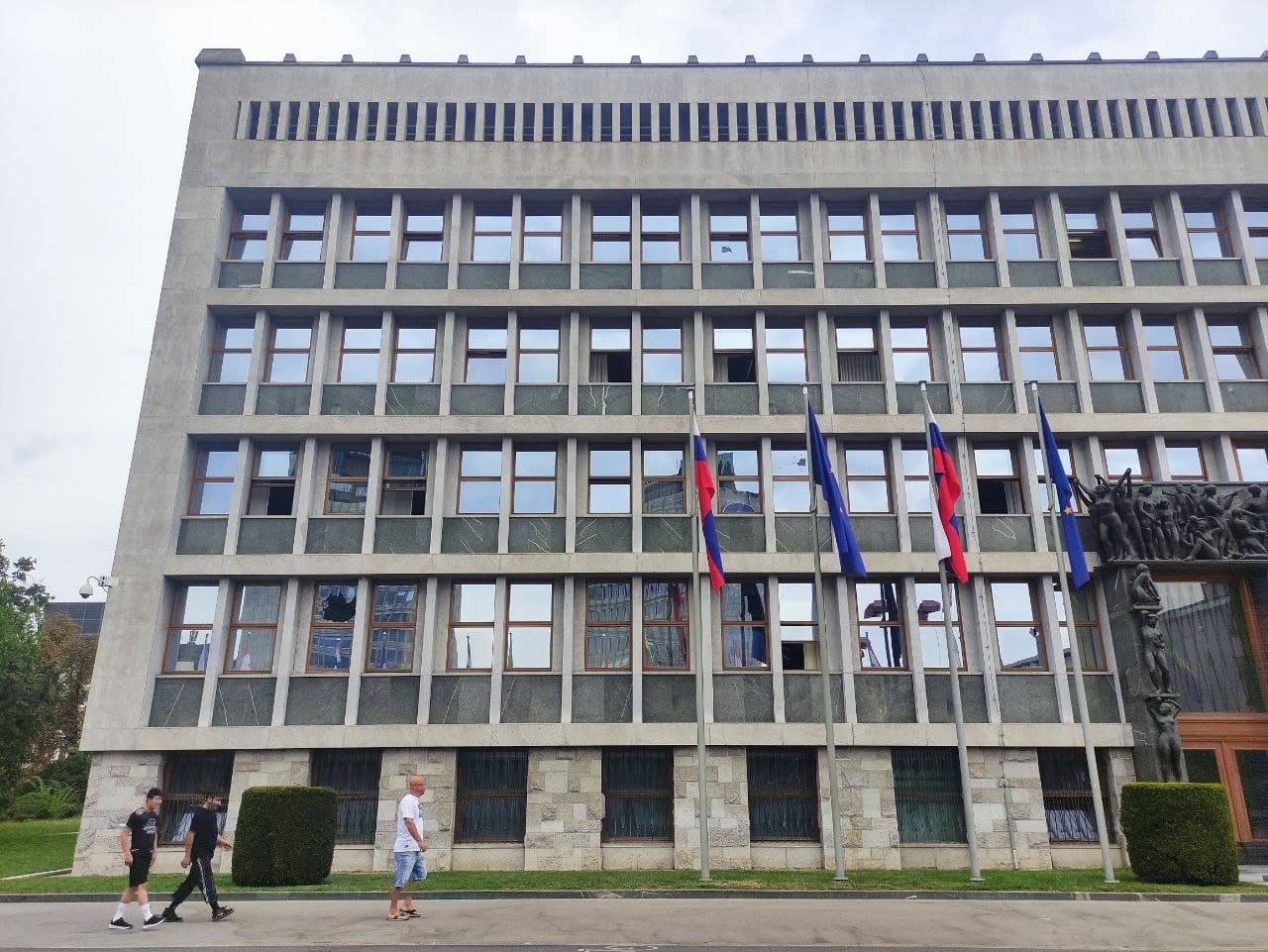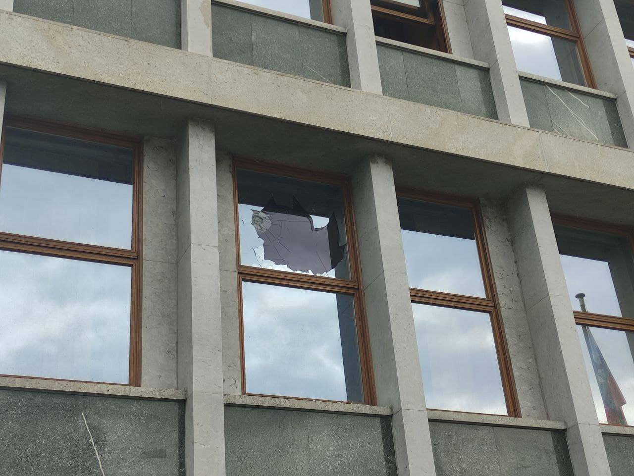 Parlament ima danes razbita okna, smetnjaki ob njem so zašgani, stavba pa je tudi rahlo okrušena. Steklo je še vedno na tleh, pred poškodovanimi deli stavbi pa so napeljali varnostni trak.