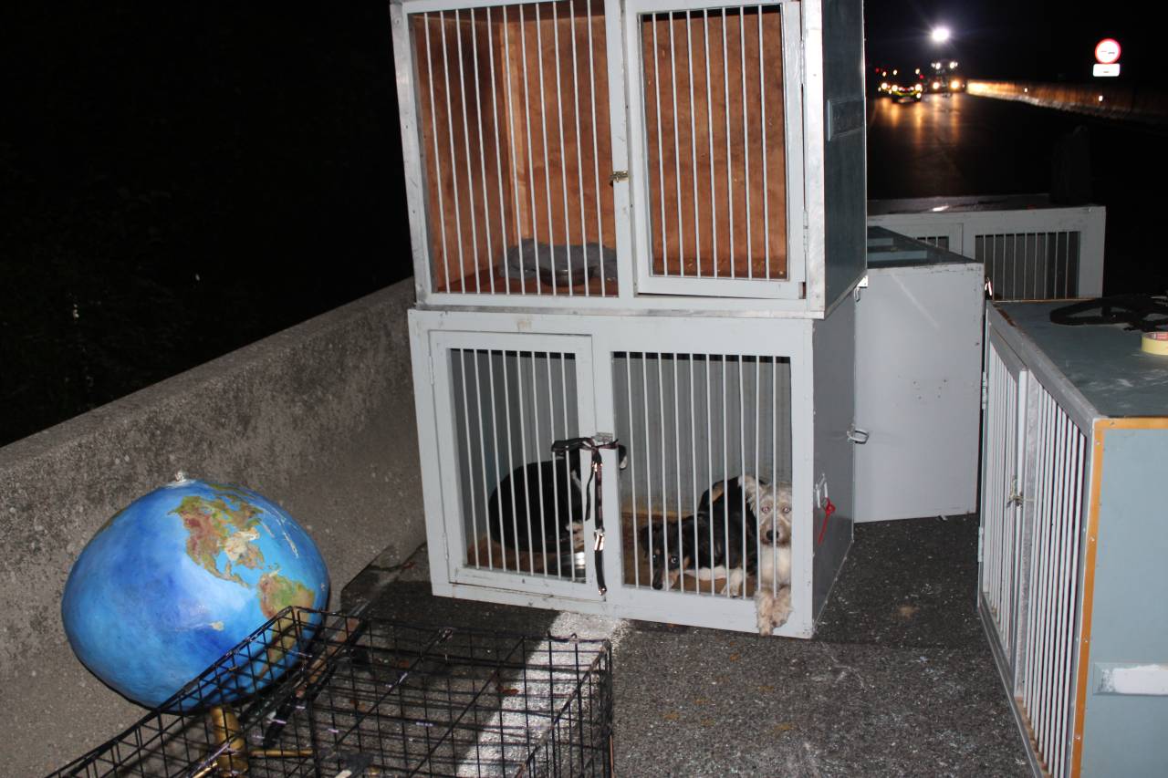 V priklopnem delu vozila je voznik v kletkah prevažal enajst psov. Dva od njih sta po trčenju pobegnila z vozila, ostalih devet je ostalo v kletkah.