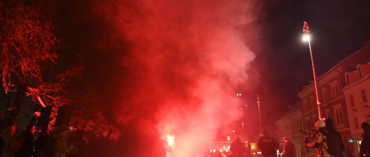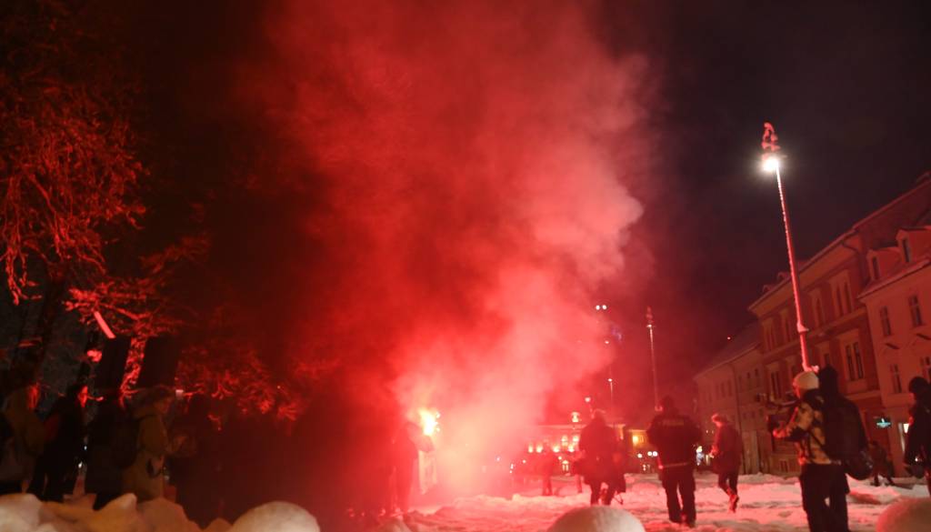 Približno 100 udeležencev neprijavljenega shoda je z Miklošičevega parka krenilo po Ljubljani. Med pohodom so prižigali bakle ter hodili po vozišču; med žrtvami so stanovanjski objekt na Župančičevi ulici, Center Rog, Policijska postaja Ljubljana Center ter kip zmaja na Zmajskem mostu.