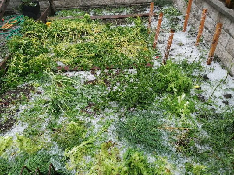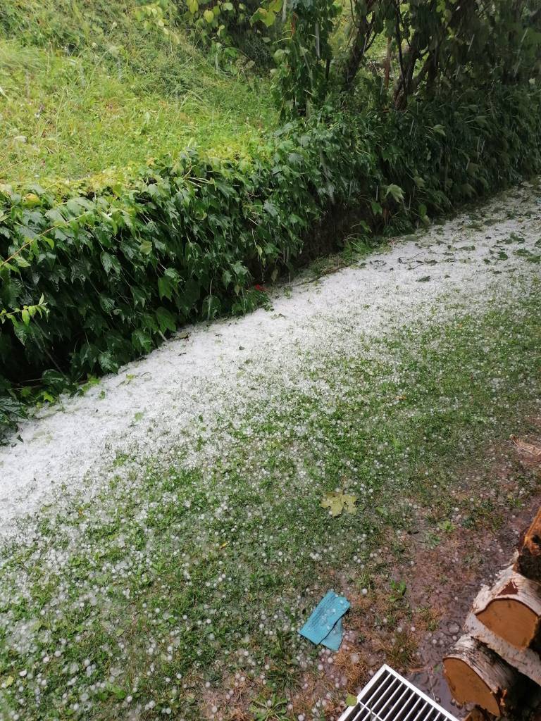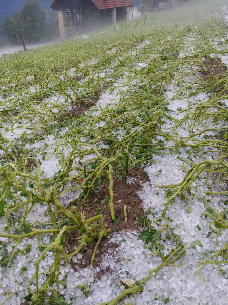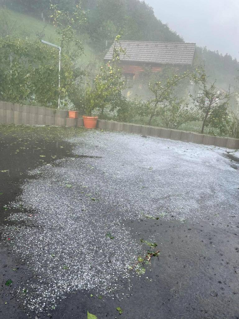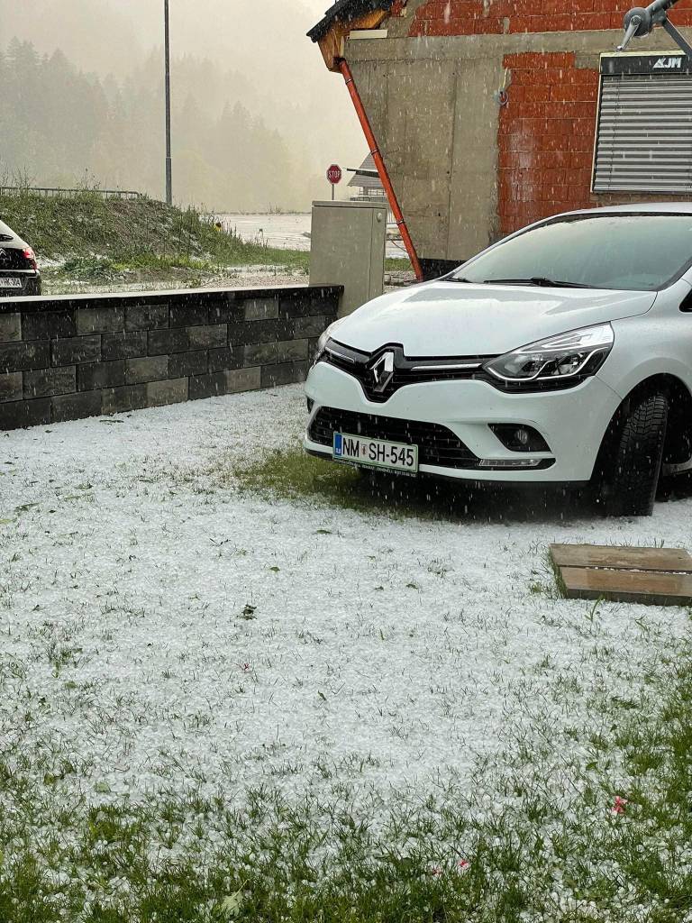 Toča je zajela Železnike, kjer je povzročila nemalo škode, še posebej na avtomobilih in vrtnih zelenicah.