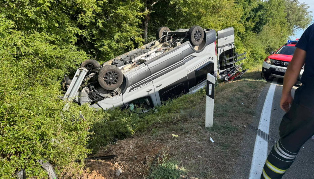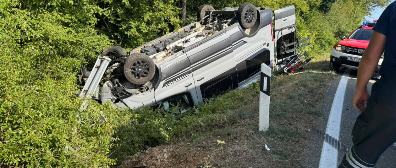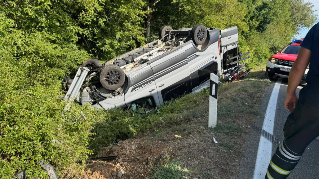 Silovit trk je oba avtomobila pognal s ceste – kamper se je prevrnil na streho, osebni avtomobil pa je prav tako končal izven vozišča. V nesreči sta bila poškodovana češki voznik in njegov 74-letni sopotnik, ki so ju z reševalnim vozilom prepeljali v KBC Reka.