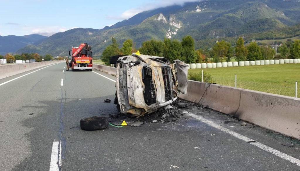 Avtomobil je pogorel, požar so pogasili gasilci. Dve osebi, ki sta bili v avtomobili, sta bili prepeljani v zdravstveno ustanovo. Eden od njiju je huje, drugi pa lažje poškodovan. Gre za slovenska državljana.
