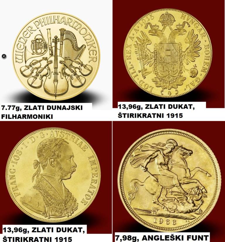 »V postopku so bili osumljencema zaseženi zlatniki, za katere naprošamo poslovalnice, ki so odkupile ali želele odkupiti take predmete kot so na fotografijah, da o tem takoj obvestijo Policijsko postajo Kranj, telefon 04 233 64 00 ali najbližjo policijsko postajo. Pokličejo lahko tudi na 113 ali anonimni telefon 080 1200.«