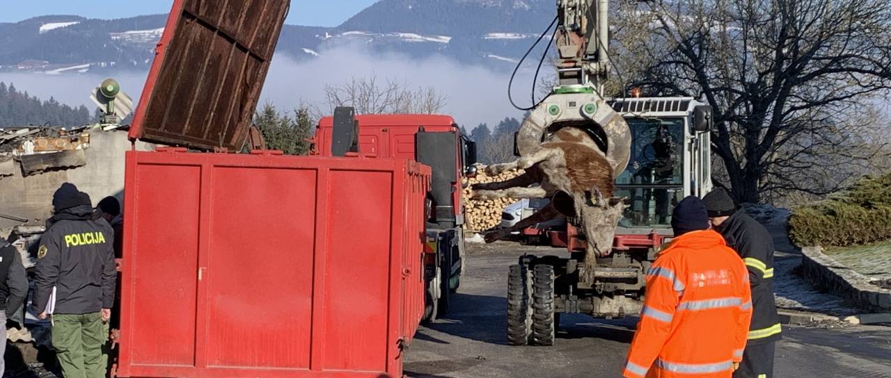 Dan po uničujočem požaru v Šentjanžu nad Dravčami se za življenje bori še zadnja krava, a upanja, da bi preživela, je malo. Večina živali je poginila ob izbruhu požara, danes so zaradi vdihanega dima poginile še preostale živali