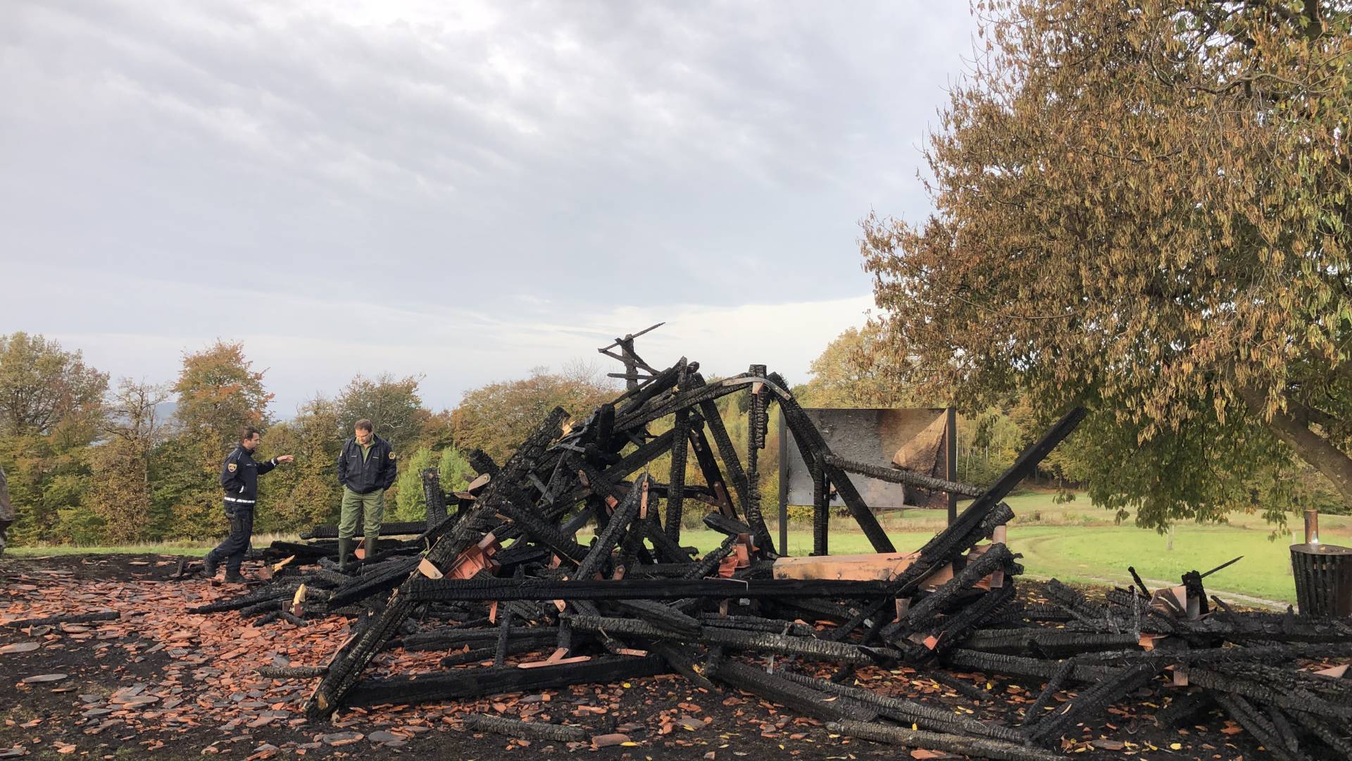 Poleg razglednega stolpa, ki je pogorel v celoti, je zgorel še koš za smeti in reklamni pano, poroča Uprava Republike Slovenije za zaščito in reševanje.