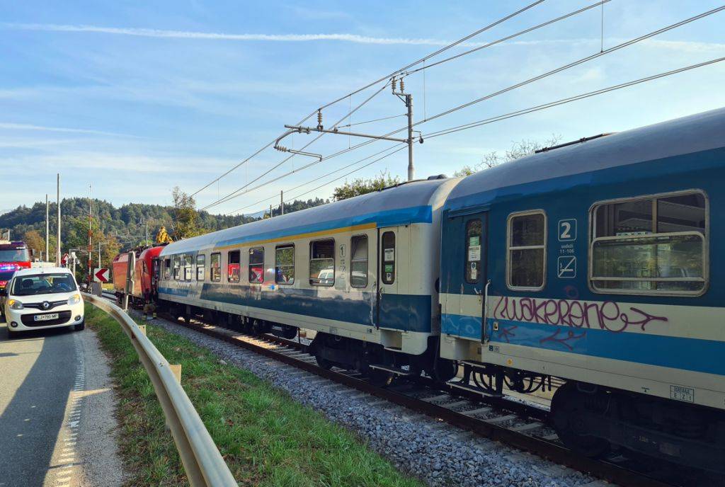 Na območju Radovljice je vlak trčil v tovorni stroj.