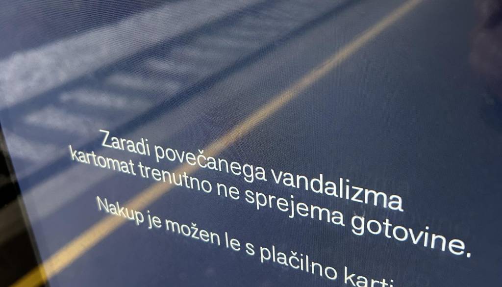 Na kartomatu Železniške postaje Ljubljana Polje je opozorilo, da kartomat zaradi povečanega vandalizma trenutno ne sprejema gotovine.