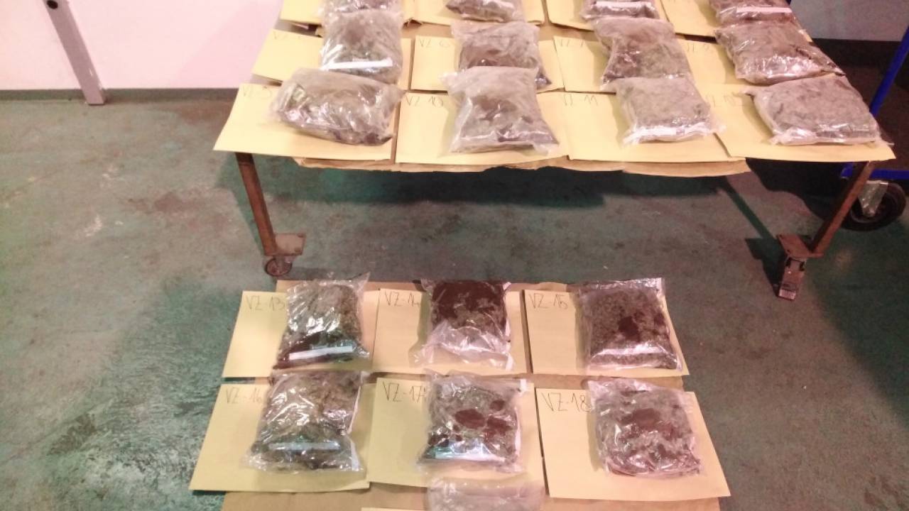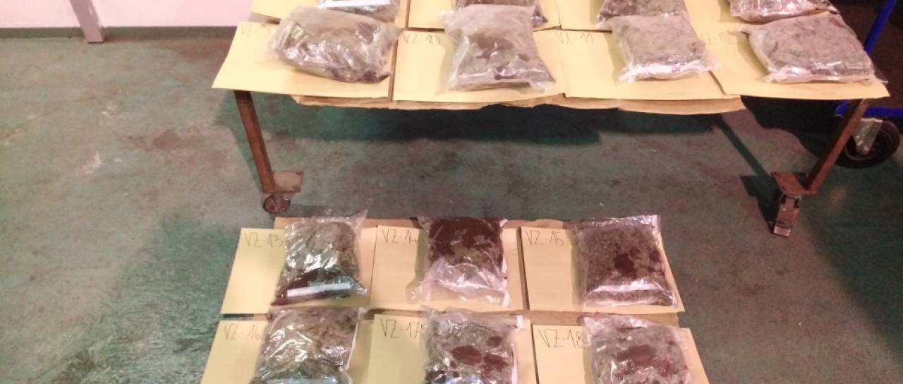 Pri preiskavi vozila so uslužbenci Policije, v sodelovanju z uslužbenci Finančne uprave RS, našli skupno 19 zavitkov rastlinskih delcev, v skupni teži 7.193,90 gramov, katerih hitri test je nakazal, da gre za prepovedano drogo marihuano.