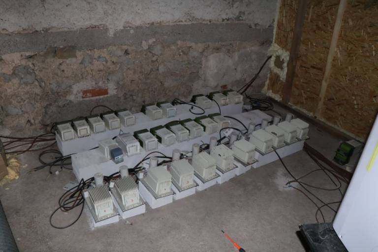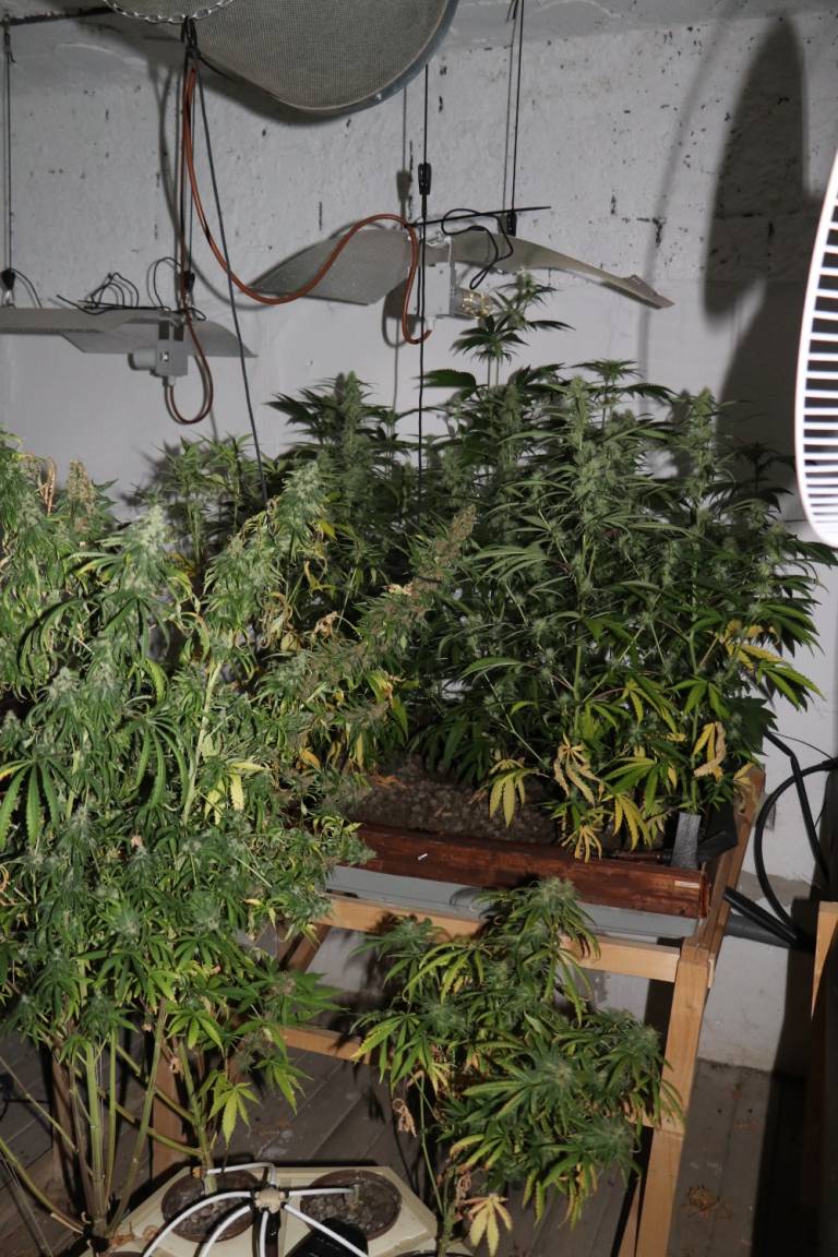 Na hišnih preiskavah sta bila odkrita dva prostora za gojenje prepovedane droge konoplje in zaseženi različni pripomočki za gojenje - žarnice, transformatorji, ventilatorji, vodne črpalke ...