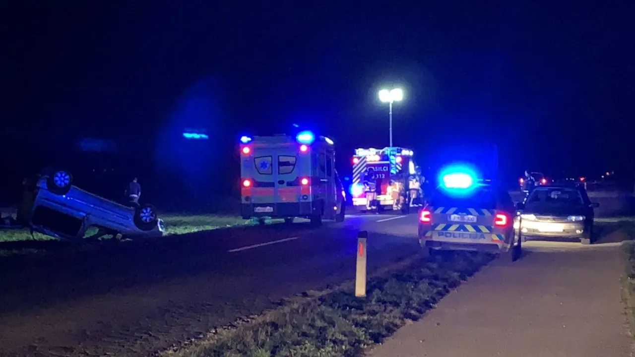 V nesreči je voznica osebnega vozila zapeljala na rob vozišča, nato pa je vozilo zaneslo, trčilo v dve drevesi, nato pa se je na streho prevrnilo v potok.