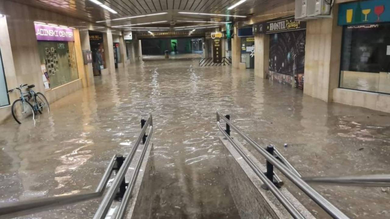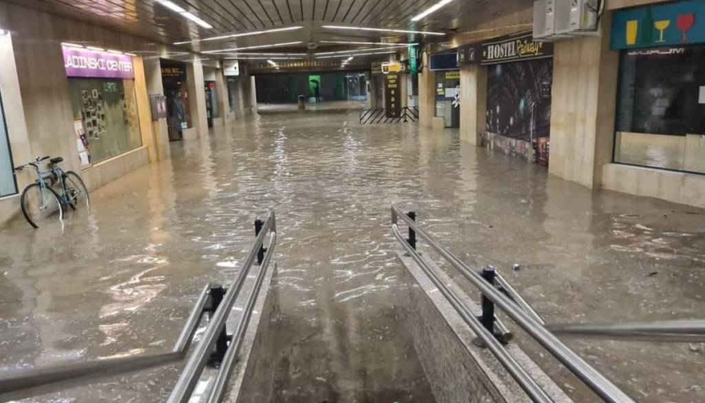 Promet je obstal na Celovški, Dunajski in Šmartinski cesti, zalilo je podhod Plava laguna in železniško postajo.