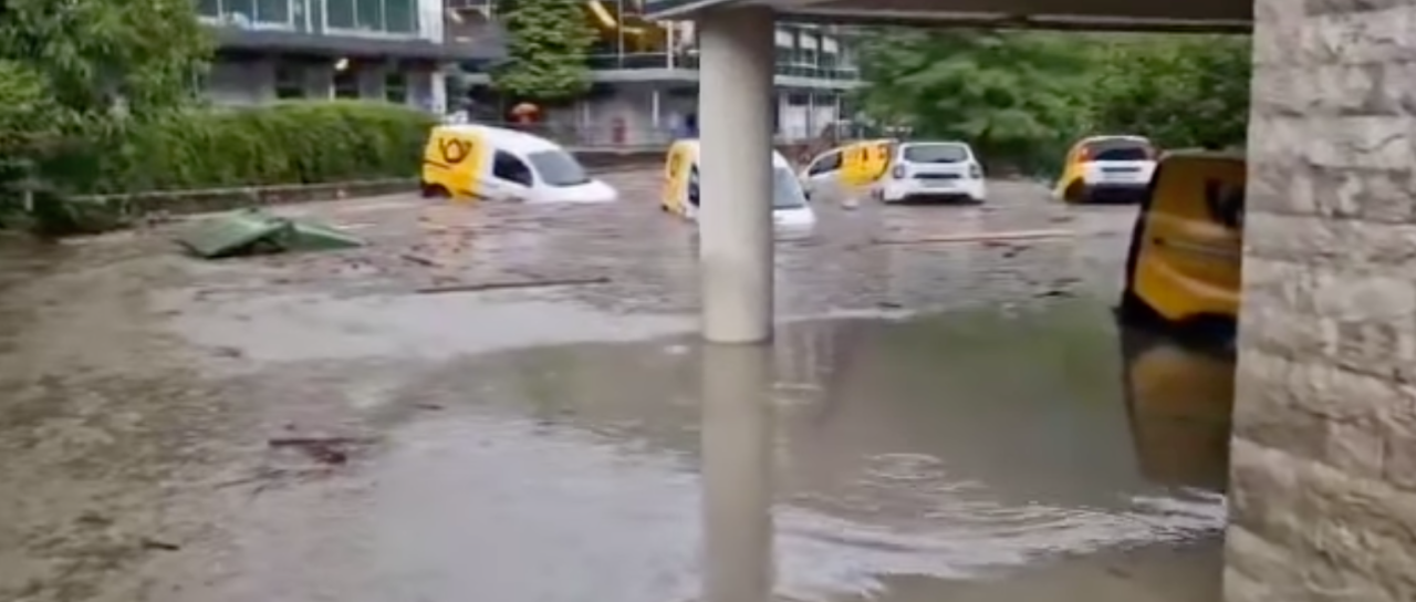 Zaradi poplav so se v četrtek popoldne v Cerknem oglasile sirene za splošno nevarnost, saj je zaradi velike količine padlega dežja voda v središču mesta drla po cestah in s seboj odnašala betonska korita za rože in zabojnike za kosovne odpadke, zalilo je tudi parkirišče pošte in pritlične prostore.