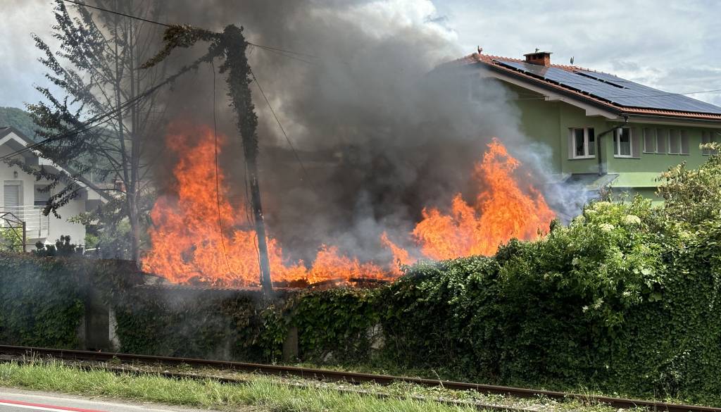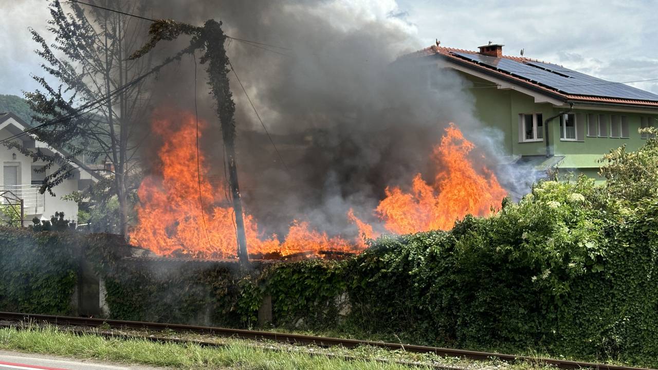 Letalo je pri padcu poškodovalo stanovanjsko stavbo, izbruhnil pa je tudi požar.