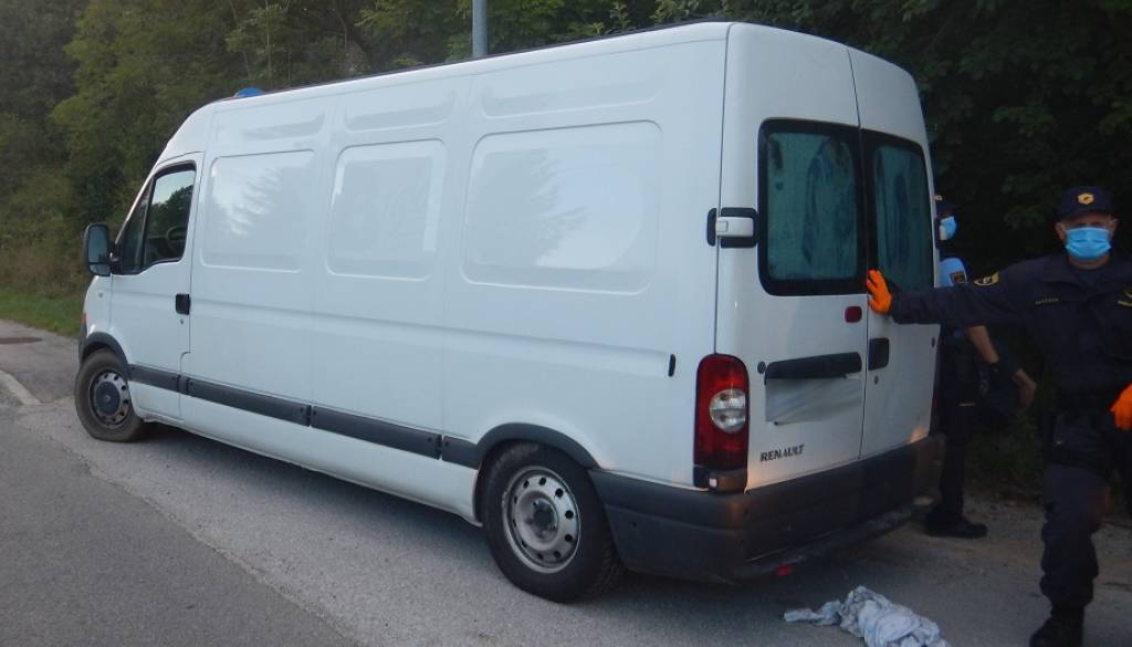 Včeraj okoli 19. ure so policisti v Podskrajniku ustavili tovorno vozilo znamke Renault master, slovenskih registrskih oznak. V postopku je bilo ugotovljeno, da sta 46-letni voznik in 50-letni sopotnik, oba slovenska državljana, v vozilu prevažala 42 tujcev (državljanov Afganistana, Pakistana, Indije in Nepala), ki so nezakonito prestopili državno mejo. Slovencema je bila zaradi suma kaznivega dejanja prepovedanega prehoda čez državno mejo ali ozemlje države odvzeta prostost.