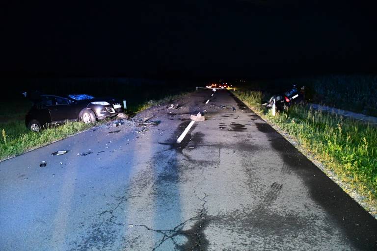 Na relaciji Srednja Bistrica - Črenšovci je včeraj, malo po 20. uri, voznica osebnega avtomobila na ravnem delu ceste zapeljala na nasprotno smerno vozišče in čelno trčila v osebni avtomobil voznice.