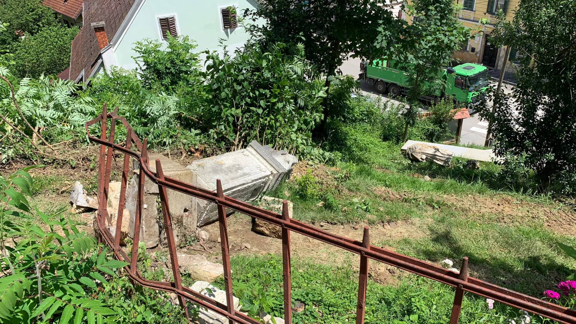 Tatovi so med krajo bagra poškodovali star kip.