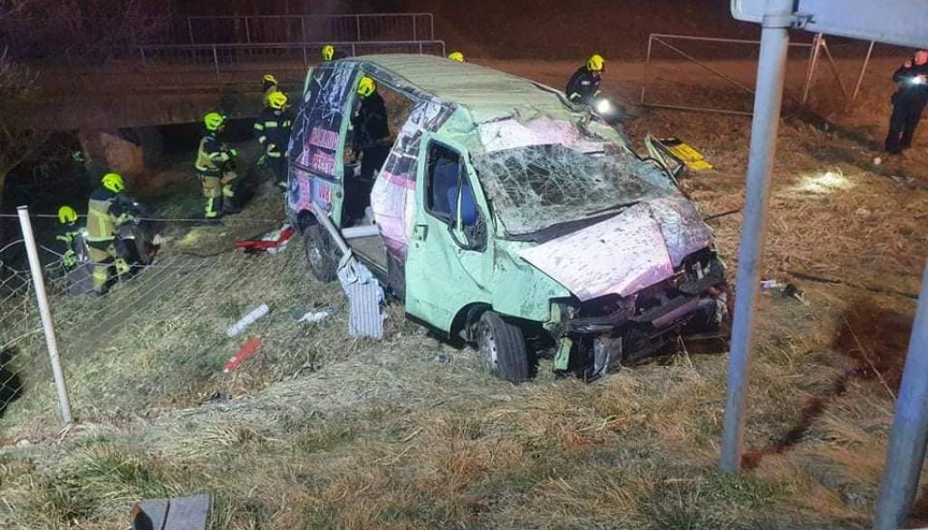 Neznani voznik je na štajerski avtocesti nekaj čez polnoč, zapeljal izven vozišča na kovinsko ograjo. Vozilo, v katerem je bilo 11 ilegalnih pribežnikov, se je večkrat prevrnilo.