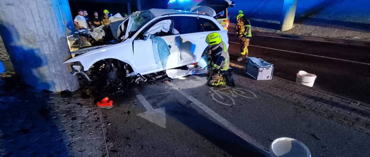 Prve informacije: Osebno vozilo trčilo v betonski steber