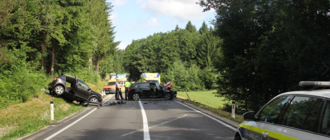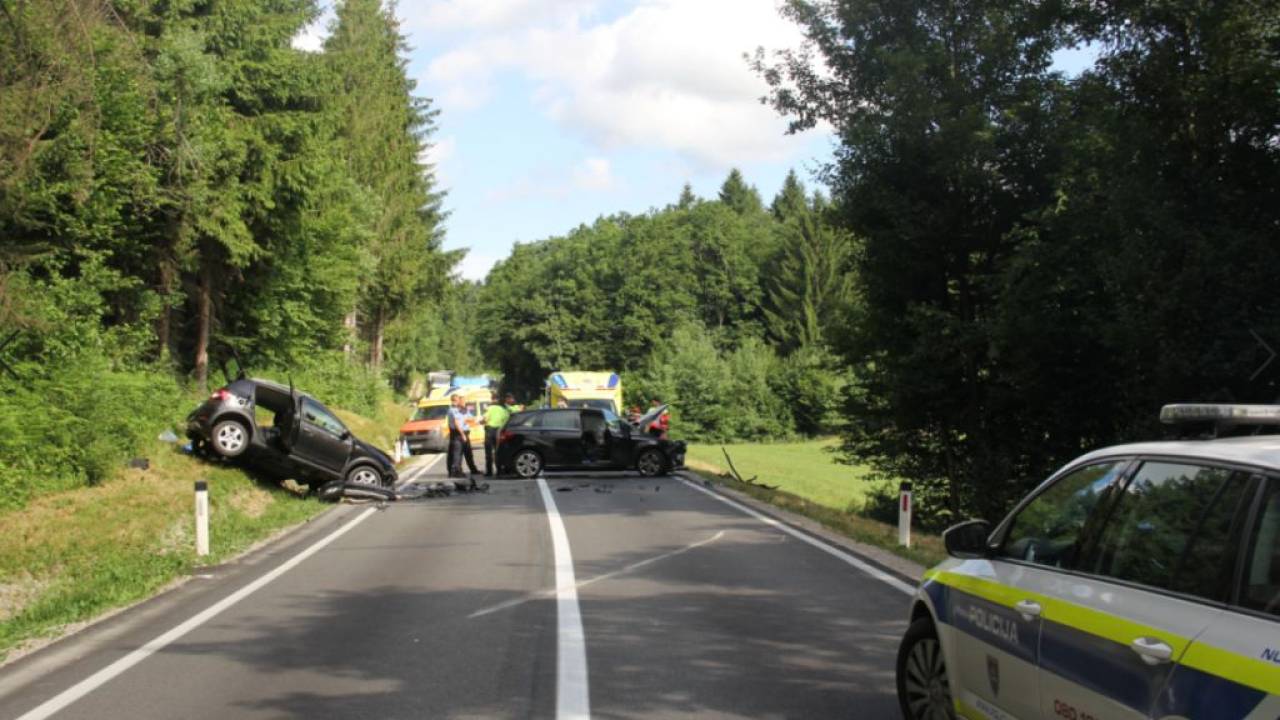 47-letna voznica osebnega vozila je v smeri od Lašč proti Turjaku iz doslej še neznanega razloga zapeljala na nasprotni vozni pas.