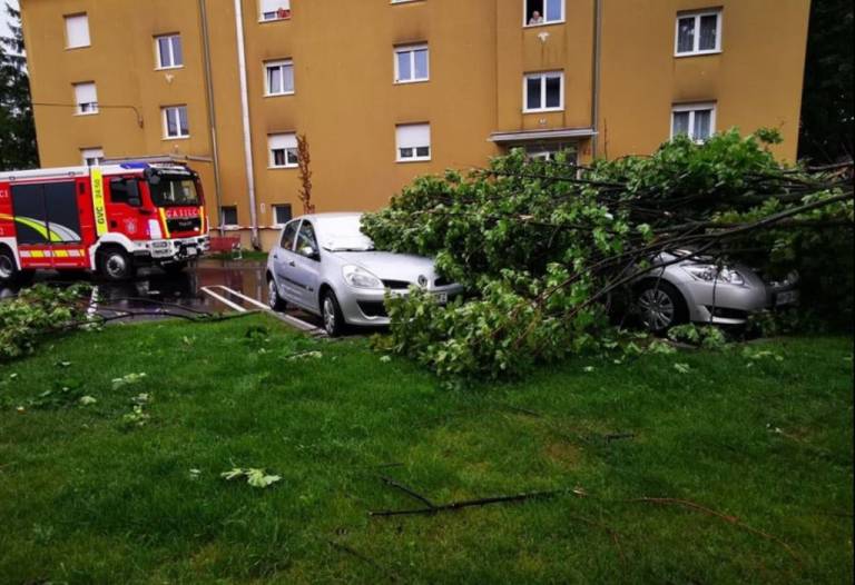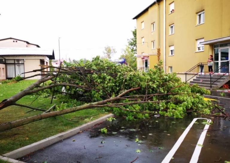Današnje neurje je še posebej močan veter spremljal na območju Slovenske Bistrice, kjer je odkrival strehe in ruval drevesa.