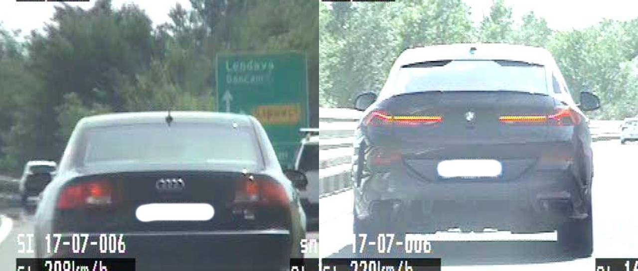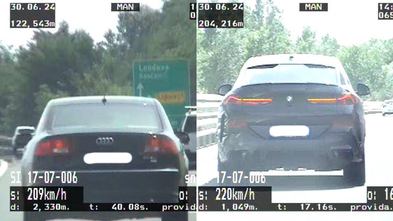 Na pomurski avtocesti z 209 in 220 kilometri na uro.