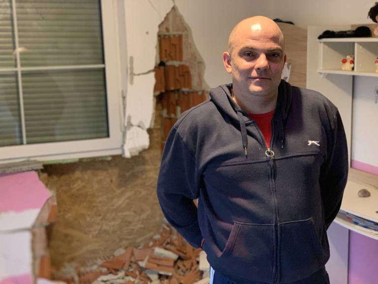 Ob pogledu na luknjo v steni otroške sobe svojih hčerk, se Kristjan Roka spominja trenutka, ko je močno počilo.