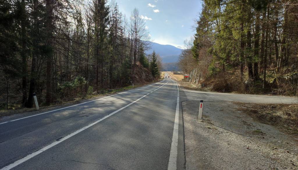 Na navedenem delu ceste je odcep na stransko cesto, prav tako pa poteka v gozdu, kjer cesto večkrat prečka tudi divjad.