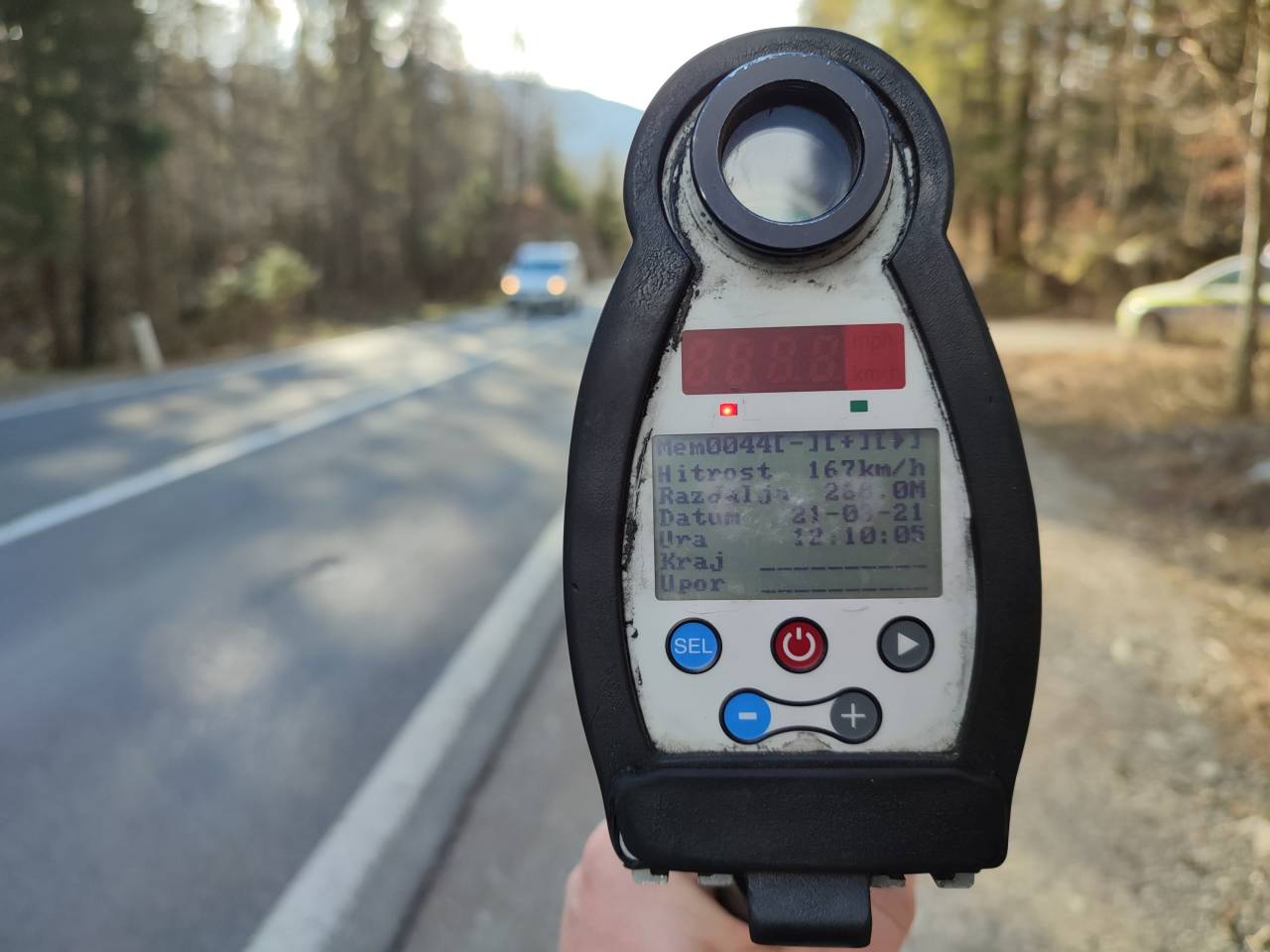 Kočevski policisti so pred dnevi, natančneje, v nedeljo okoli 12. ure na cesti med Kočevjem in Ribnico, v bližini kraja Gornje Ložine opravljali meritve hitrosti in pri tem obravnavali voznika osebnega vozila, ki je pri omejitvi hitrosti na 90 km/h vozil s hitrostjo kar 167 km/h.