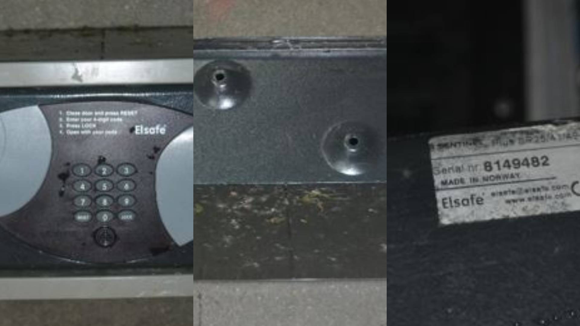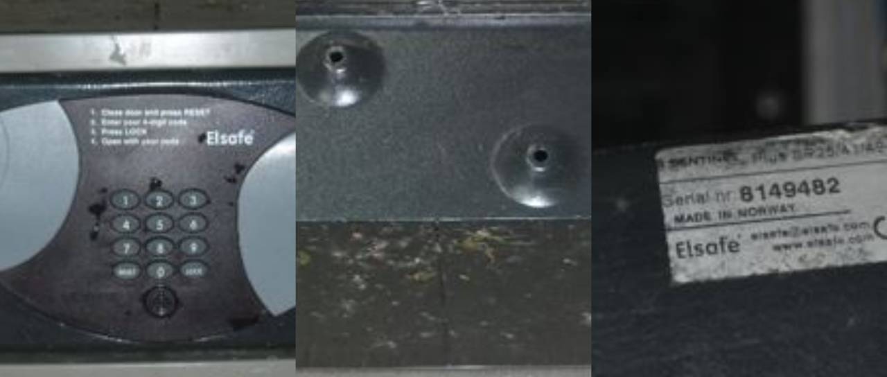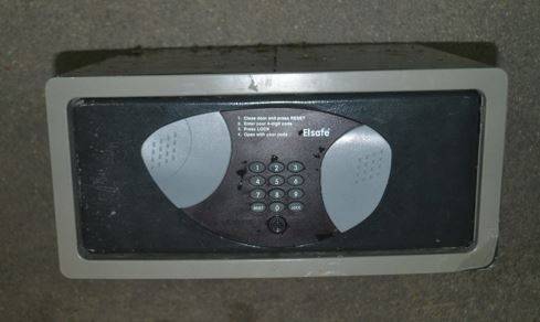 Gre za sef dimenzije 40 krat 43 krat 20, ki ima na sprednji strani elektronsko številčnico za odklepanje, sivo z napisom Elsafe.