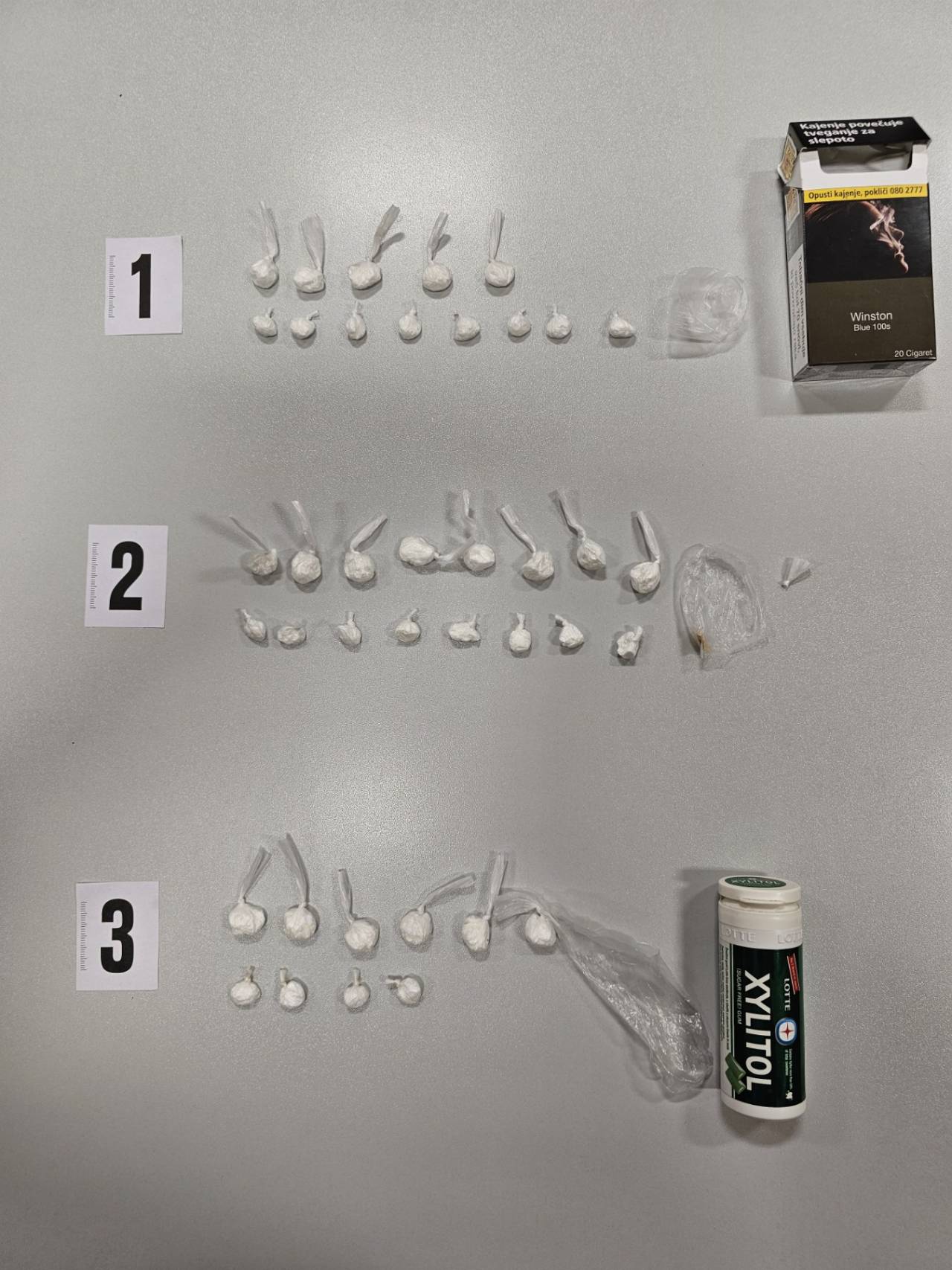 Policisti so takoj posumili, da gre za prepovedano drogo, konkretno kokain, zato so nadaljevali postopek. Sum se je potrdil, saj so pri pregledu vozila našli kar 39 zavitkov kokaina, ki so bili očitno namenjeni nadaljnji prodaji.