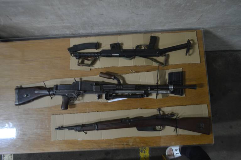 Pri hišni preiskavi so našli in zasegli prepovedano orožje in sicer brzostrelko in puškomitraljez s pripadajočima nabojnikoma in repetirno puško z risano cevjo.