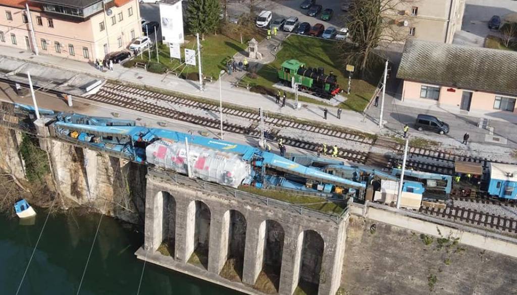 Za dvig prevrnjenega tovora, ki skupaj z ohišjem specialnega vagona tehta okoli 380 ton, bo poskrbelo avstrijsko podjetje.