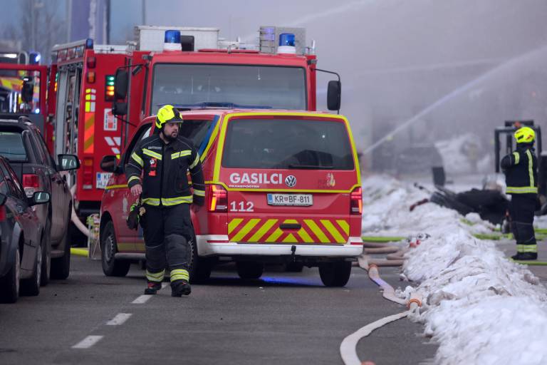 Pri gašenju obsežnega požara so sodelovali kranjski poklicni gasilci in števila prostovoljna gasilska društva.