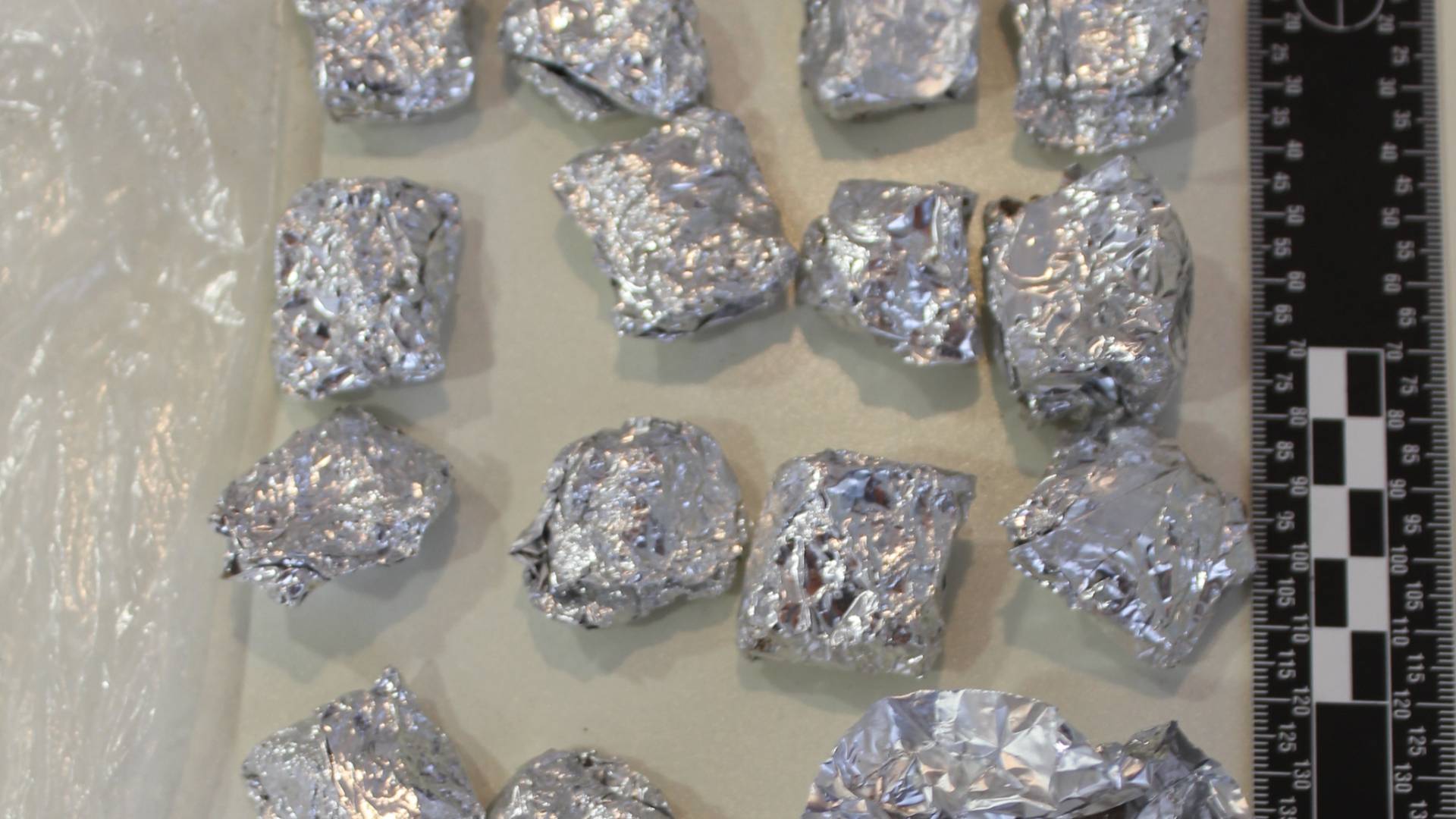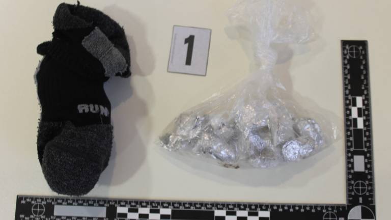 Ob pregledu terena so našli PVC vrečko in nogavico, v katerih je bilo skoraj 60 zavitkov prepovedanih drog, po podatkih policije gre za kokain in heroin.