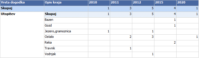 Od leta 2015 naprej ni bilo novih primerov, vse do letos, ko je za posledicami utopitve umrla ena oseba, in sicer v drugem nedefiniranem okolju.