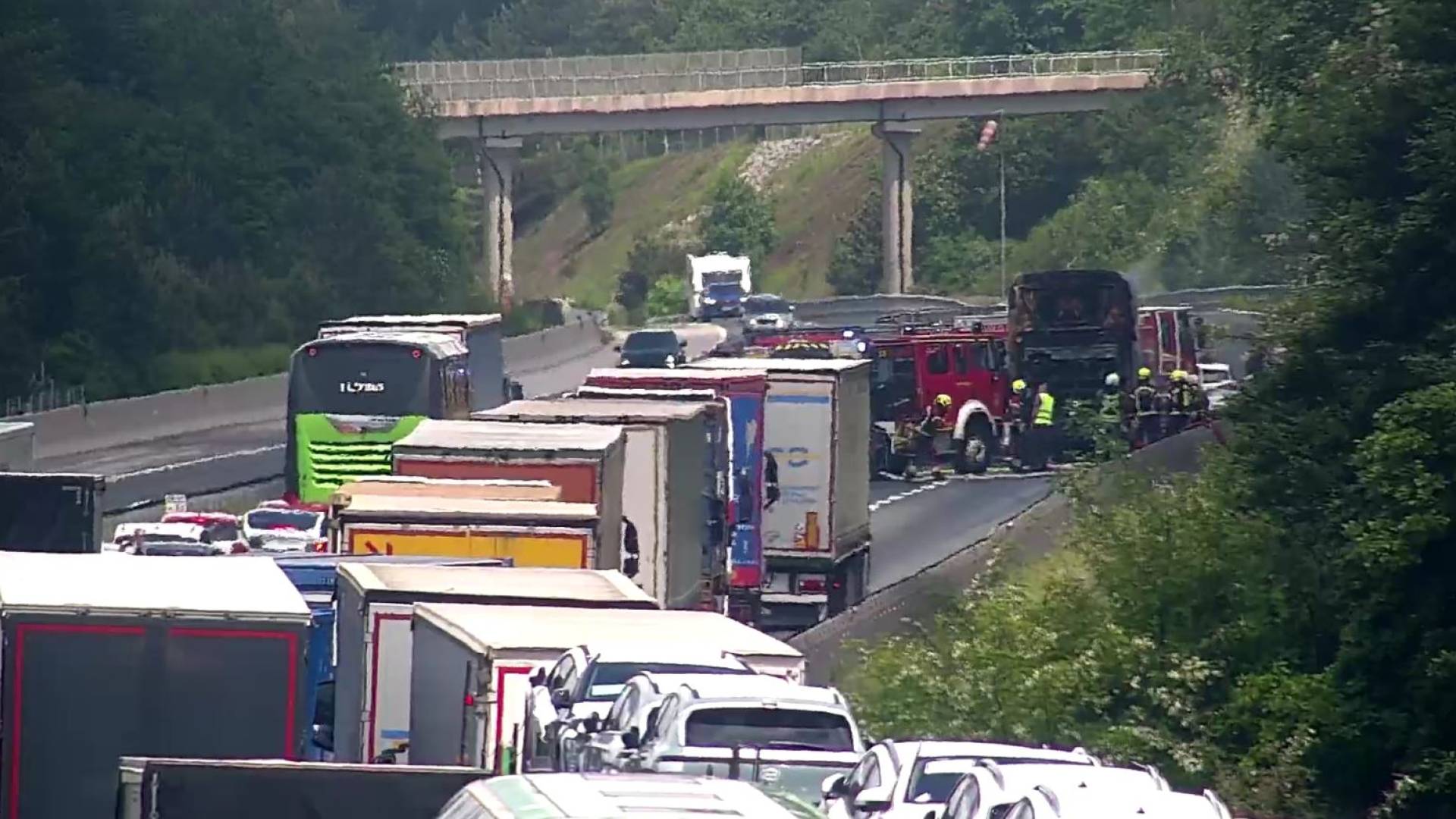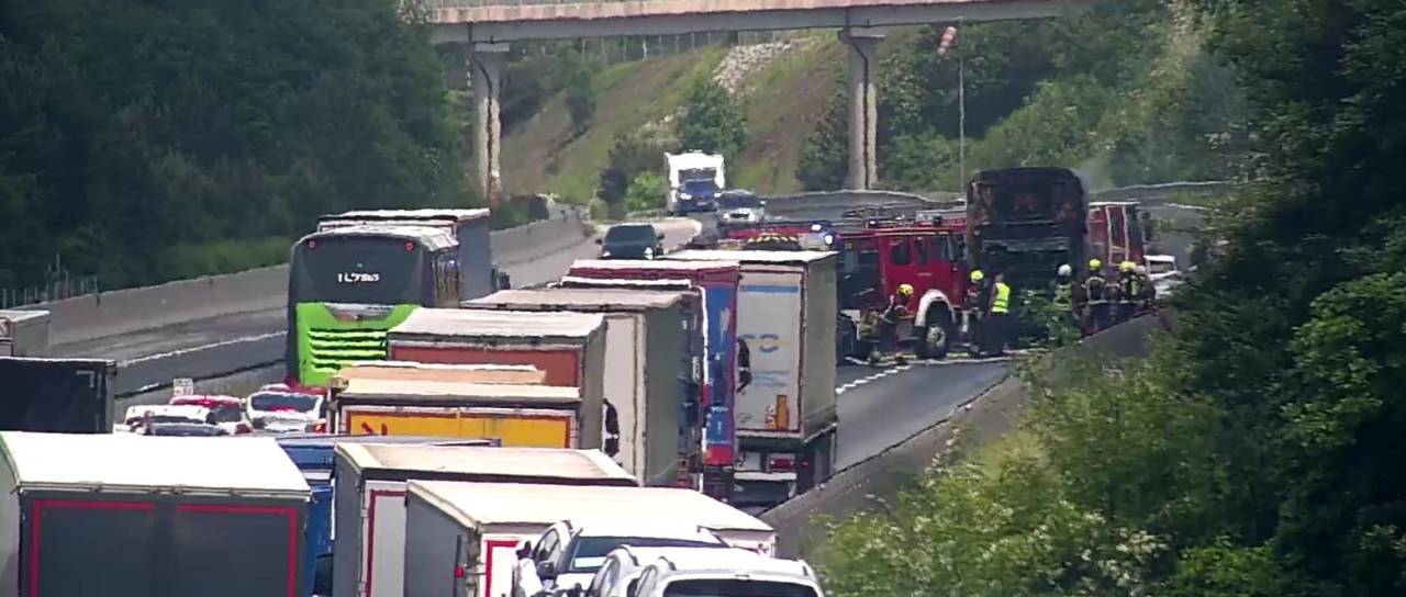 Primorska avtocesta je med Senožečami in Nanosom proti Ljubljani zaprta zaradi gorečega vozila.