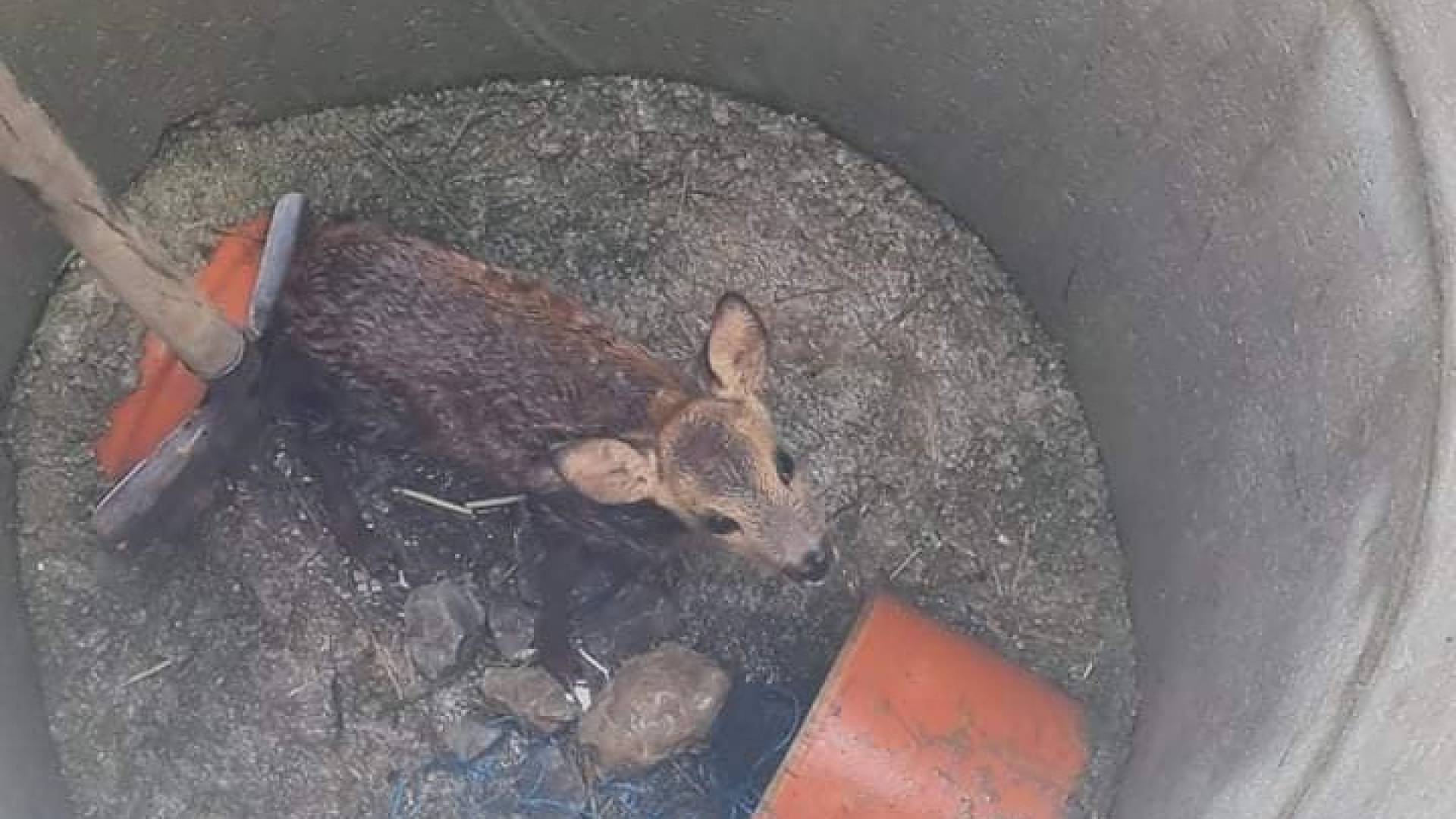 Mali srnjaček je namreč padel v jašek in se zatekel dvajset metrov po cevi.