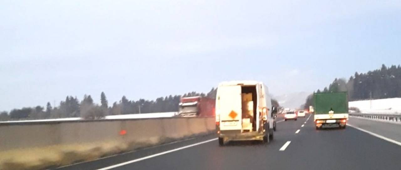 Ne boste verjeli. Policisti so na štajerski avtocesti med kontrolo prometa ustavili voznika kombija z odprtimi vrati, ki je v zadnjem delu prevažal skoraj tono razstreliva. Poglejte priložene fotografije.
