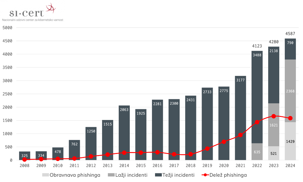 Nacionalni odzivni center za kibernetsko varnost SI-CERT je namreč objavil poročilo o stanju kibernetske varnosti v Sloveniji za leto 2024. Število prijavljenih incidentov je po njihovih podatkih znova naraslo, predvsem na račun vse bolj prefinjenih prevar, ki ciljajo na vsakdanjega uporabnika in poslovne sisteme.