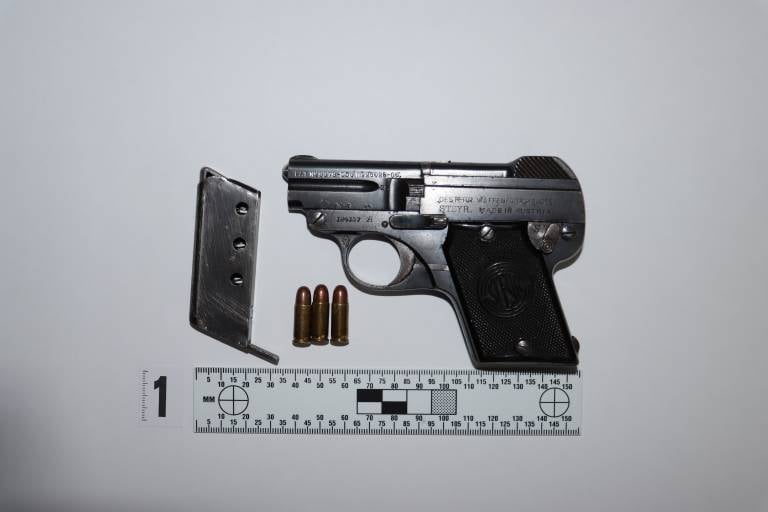 Osumljencu je bila v postopku zasežena polavtomatska pištola kalibra 6,35 mm z nabojnikom in naboji.