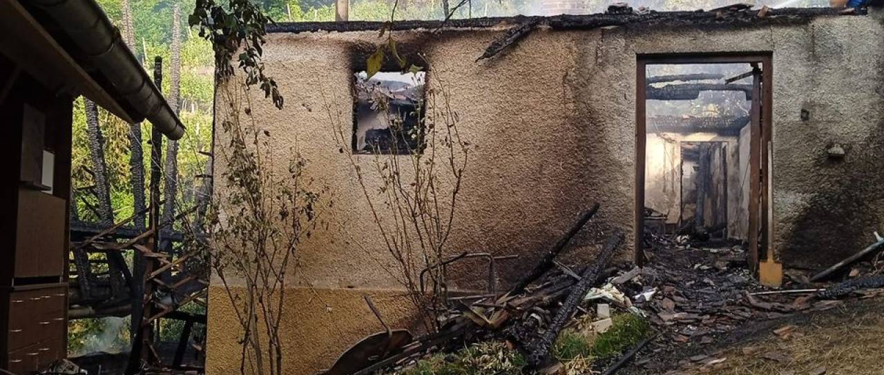 Objekt z nadstreškom v približni izmeri 12 krat sedem metrov je uničen v celoti, lastnik pa je umrl v požaru. O dogodku so bile obveščene pristojne službe.