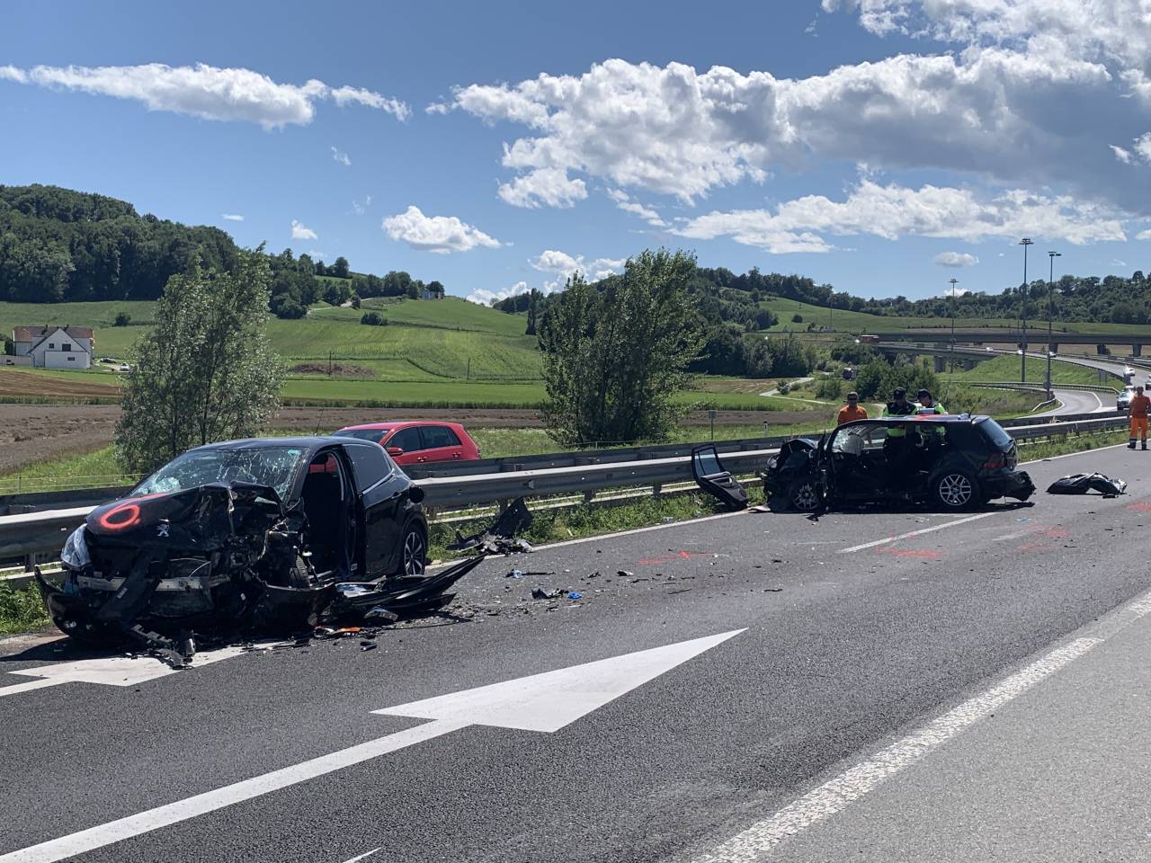 Vsaj dve vozili, verjetno pa jih je bilo še več, sta se uspeli umakniti, a nato je 27-letna voznica osebnega avtomobila, ki je vozila po prehitevalnem pasu v smeri Maribora, trčila v vozilo 79-letnice.