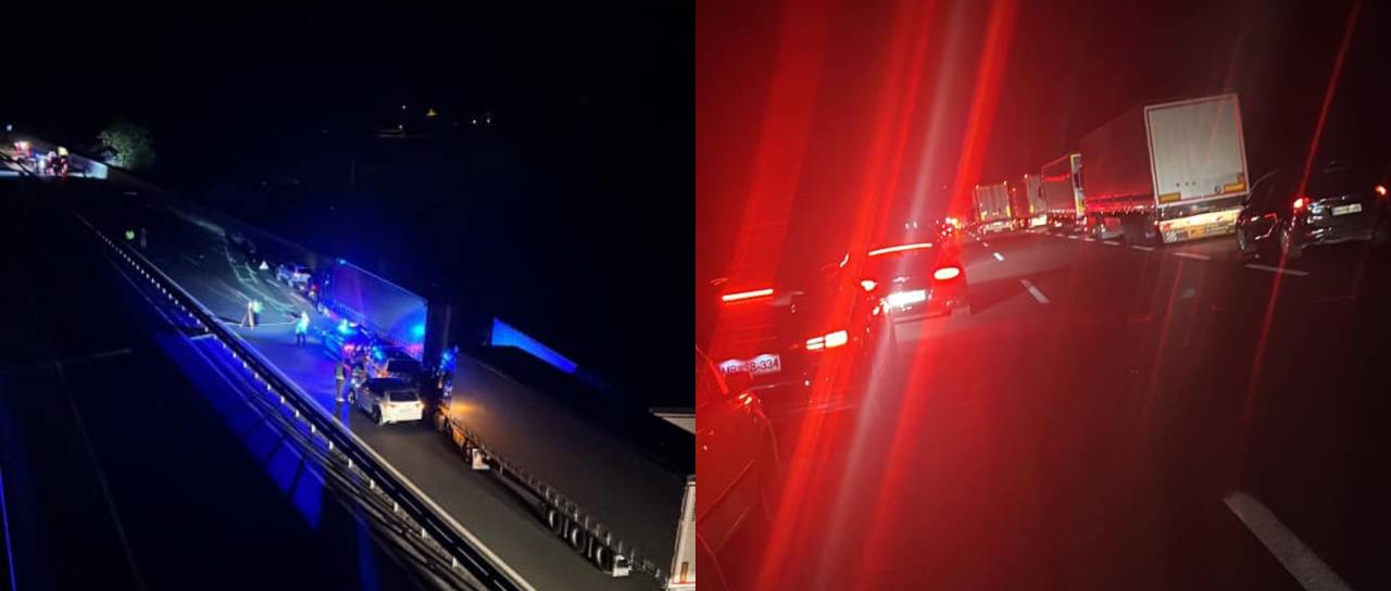 Po poročanju Uprave za zaščito in reševanje Republike Slovenije so ob 23.24 na avtocesti Slovenska Bistrica–Tepanje trčila tri osebna vozila.