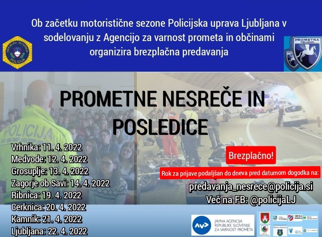Da bi o posledicah nesreč ozavestili čim več ljudi, pa so pripravili predavanja z naslovom Prometne nesreče in posledice. Predavanja so brezplačna in bodo potekala na več lokacijah na območju celotne policijske uprave.