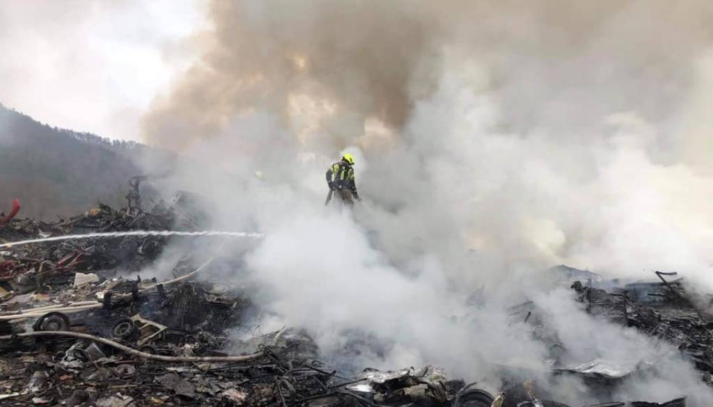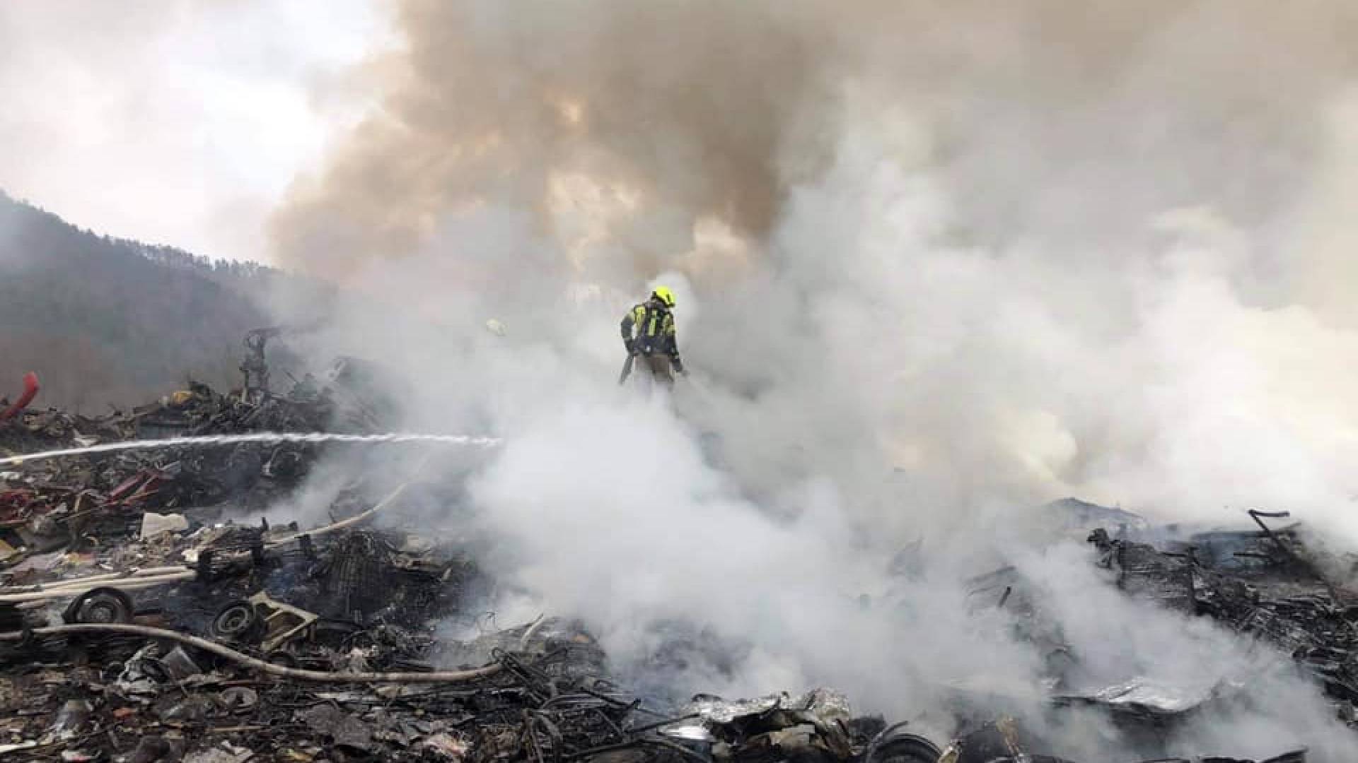 Policisti in kriminalisti Policijske uprave Ljubljana so opravili ogled kraja požara na avtoodpadu v Kašlju.