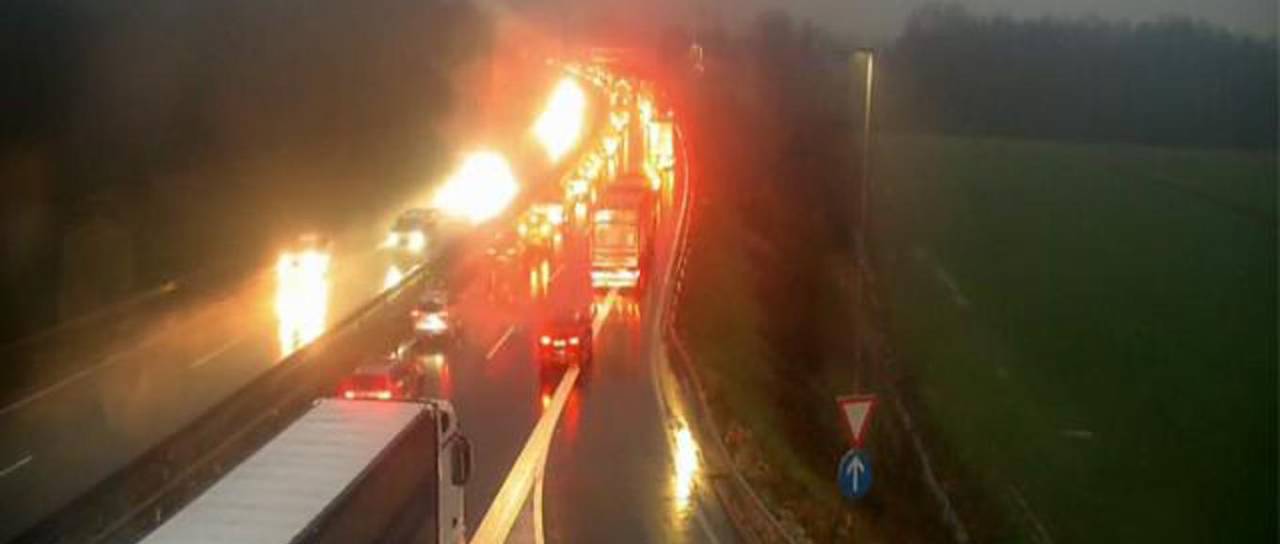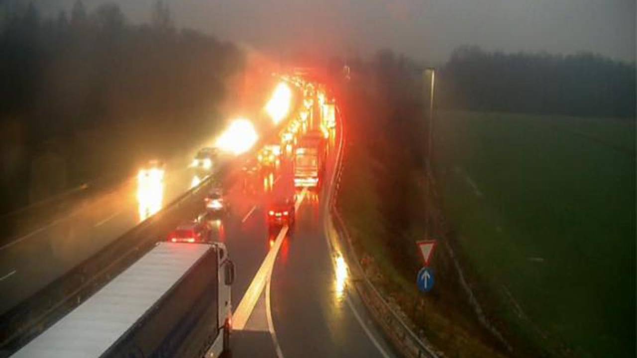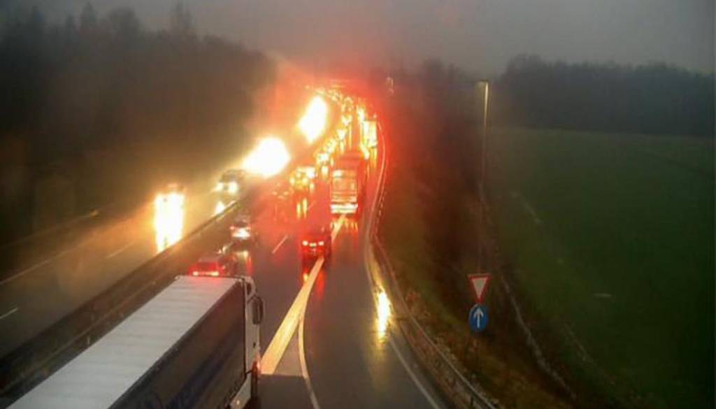 Med Hočami in Slivnico je oviran promet pred razcepom Slivnica proti Ljubljani.