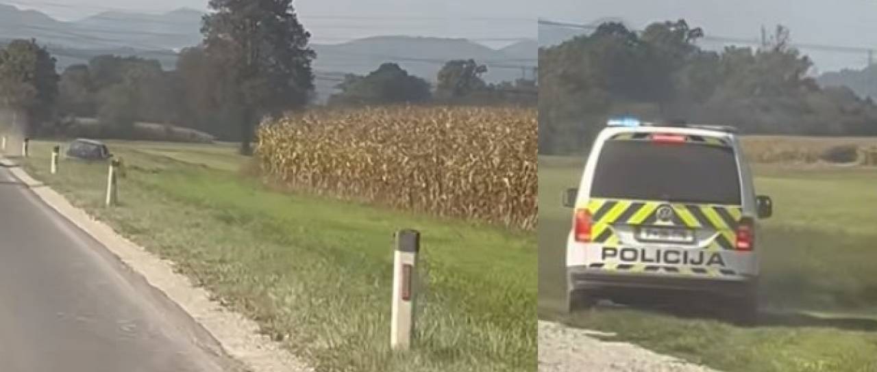 Kot je razvidno s posnetka, policisti v volkswagen caddyju opustijo pregon avtomobila, potem ko ta z vozišča zapelje na kolovozno pot – nekaj časa mu še vzporedno sledijo, nato pa policijski avtomobil obstane.