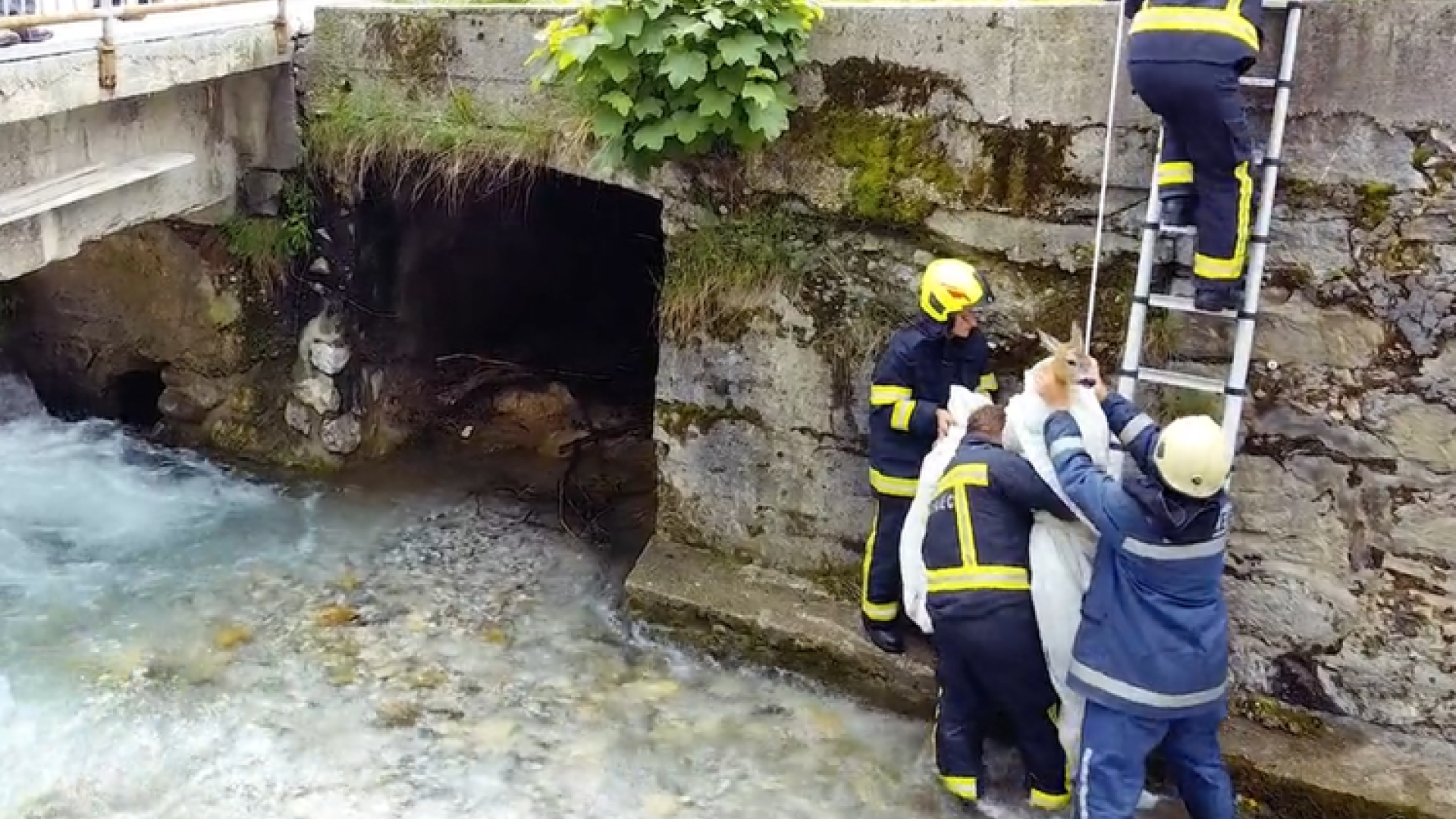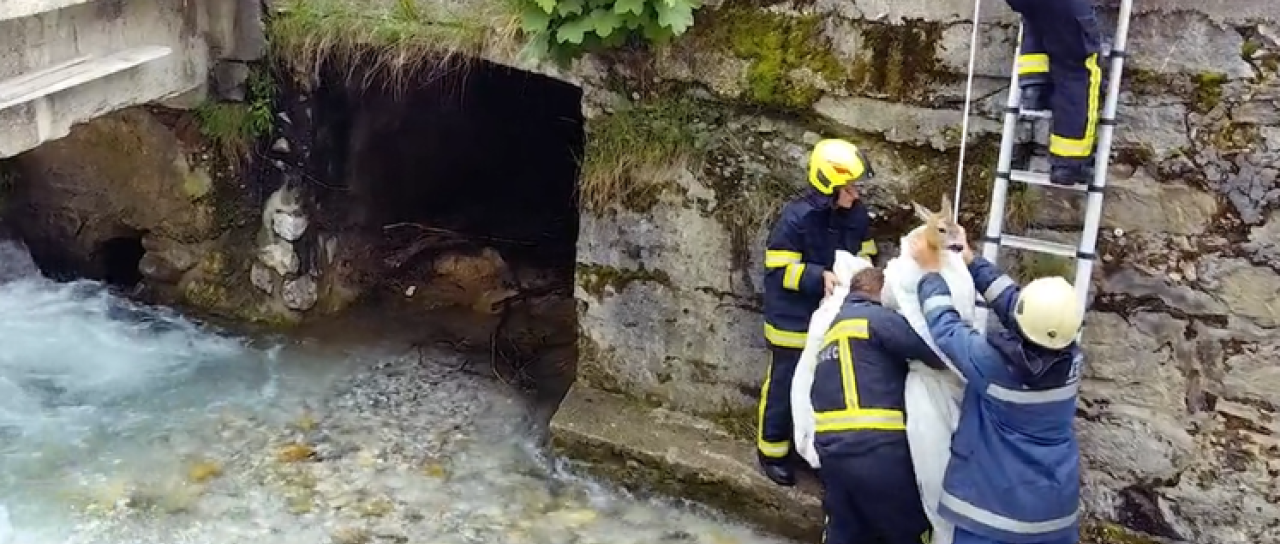 Devet gasilcev Prostovoljnega gasilskega društva Tržič je s hitrim posredovanjem in iznajdljivostjo rešilo srno, ki se je ujela v strugo gorskega potoka Mošenik.